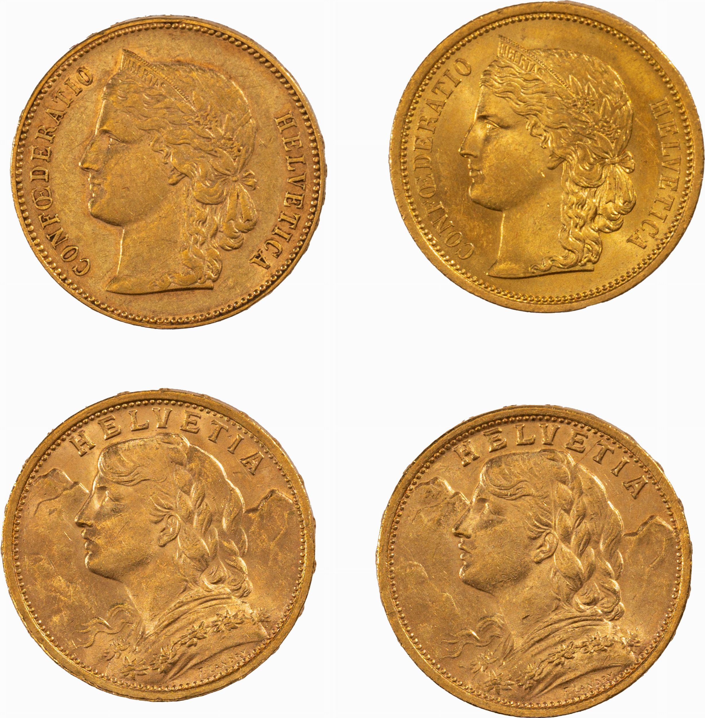 1883, 1896, 1909, 1911. Zecca di Berna, Metallo: AV, peso totale gr. 25,79; mBB.