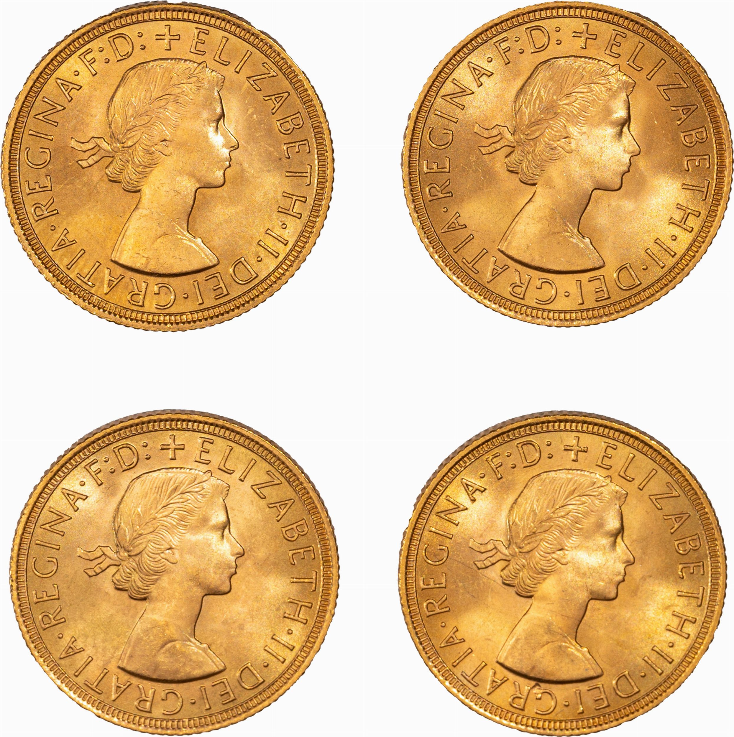 1958 D/ effigie della Regina a d. R/ San Giorgio a cavallo trafigge il drago a d., Zecca di Londra; Metallo: AV, peso totale gr. 31,97. SPL.