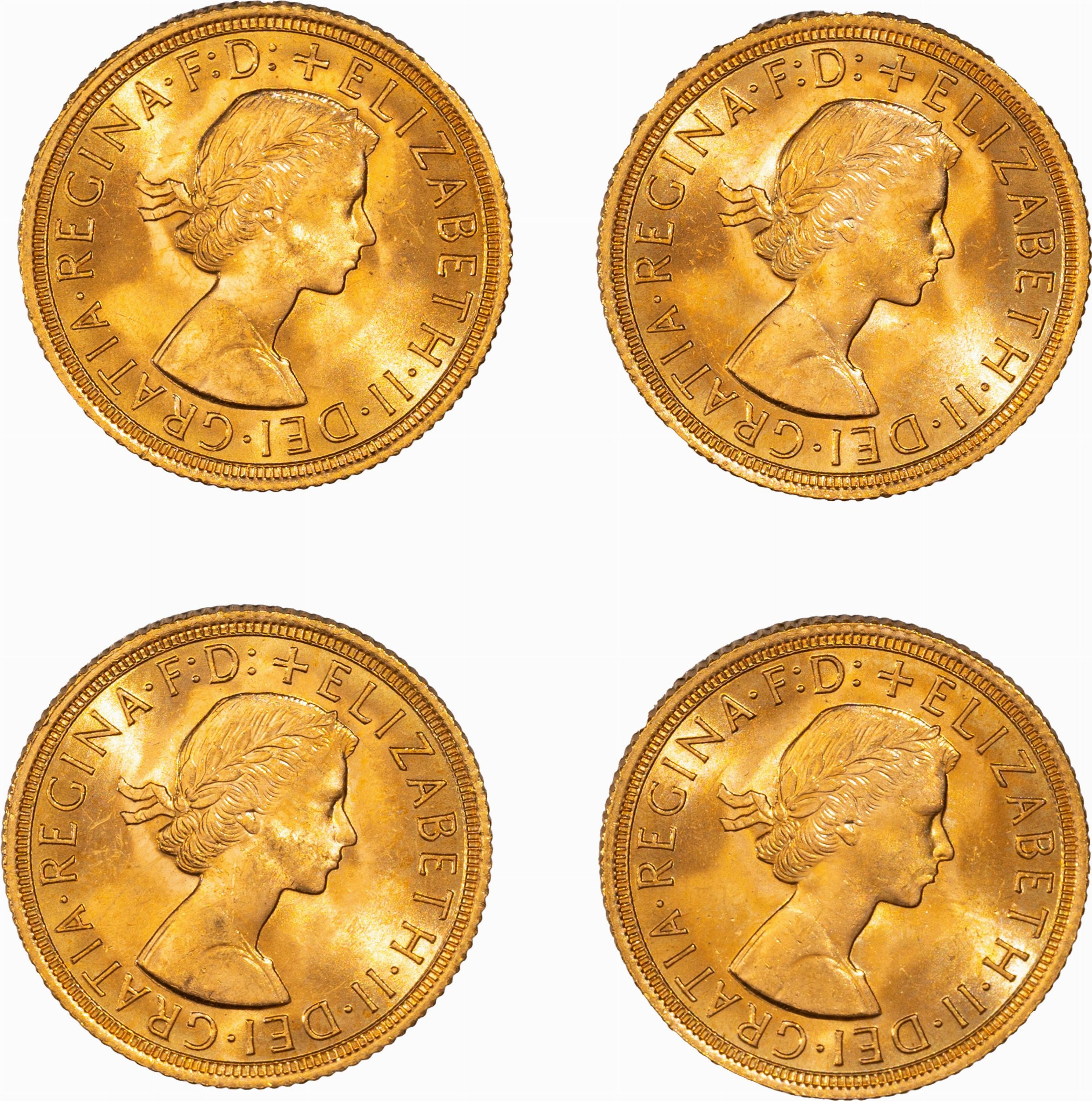 1963 D/ effigie della Regina a d. R/ San Giorgio a cavallo trafigge il drago a d., Zecca di Londra; Metallo: AV, peso totale gr. 31,98. SPL.