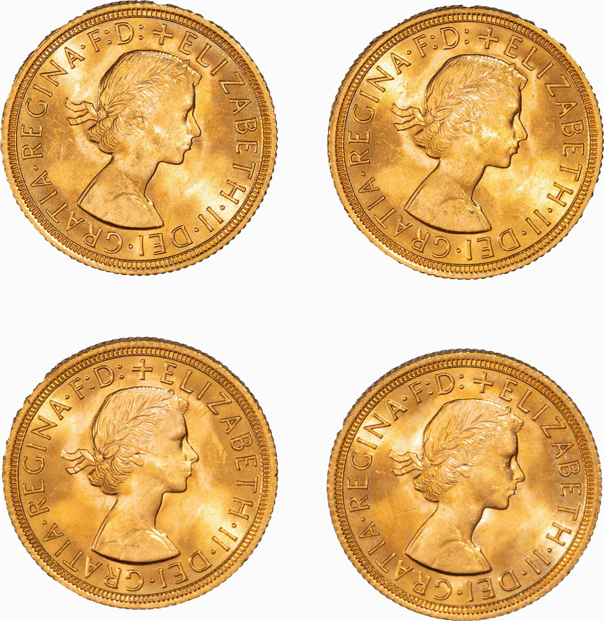 1963 D/ effigie della Regina a d. R/ San Giorgio a cavallo trafigge il drago a d., Zecca di Londra; Metallo: AV, peso totale gr. 31,98. SPL.