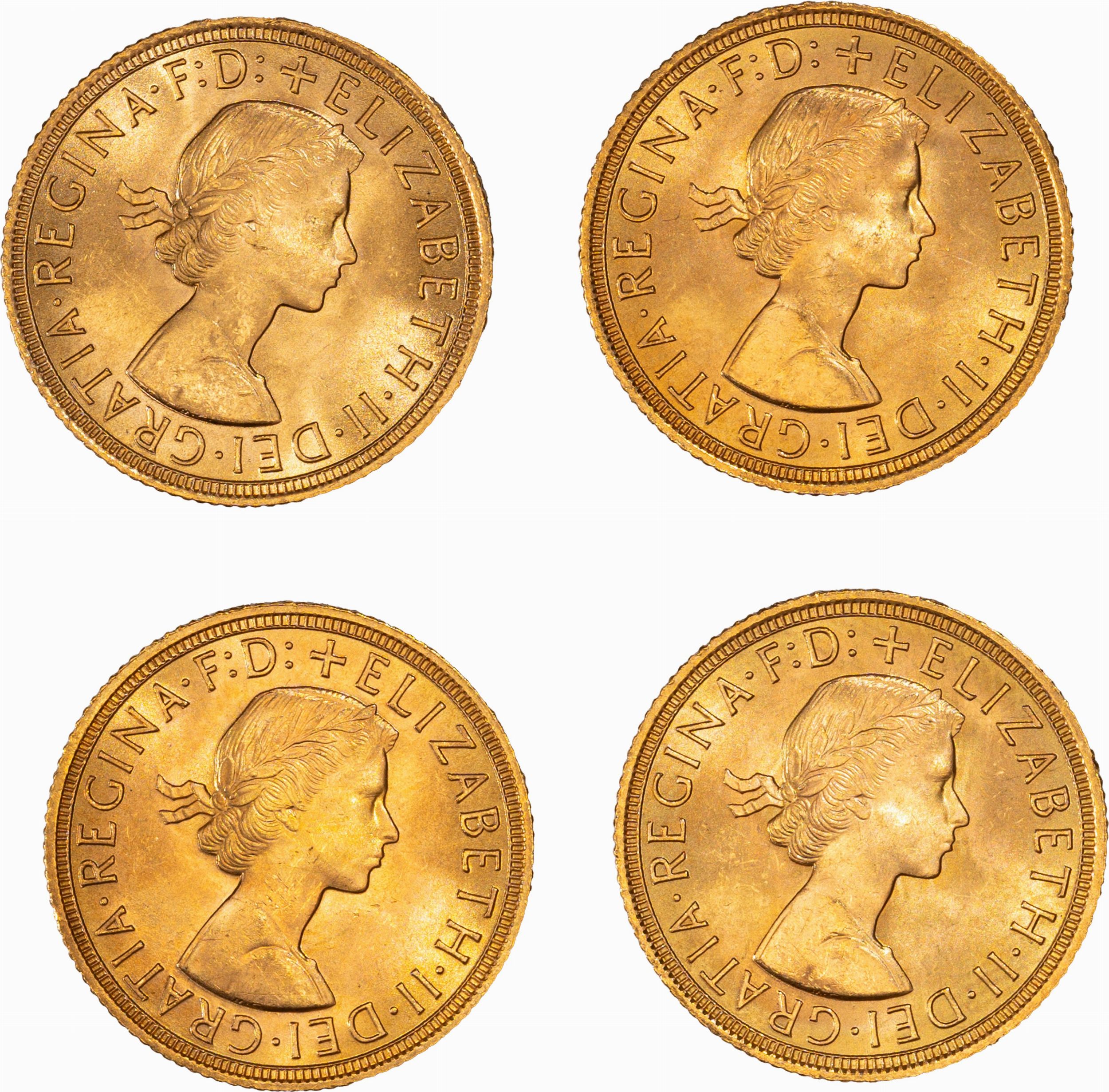 1958 D/ effigie della Regina a d. R/ San Giorgio a cavallo trafigge il drago a d., Zecca di Londra; Metallo: AV, peso totale gr. 31,97. SPL.