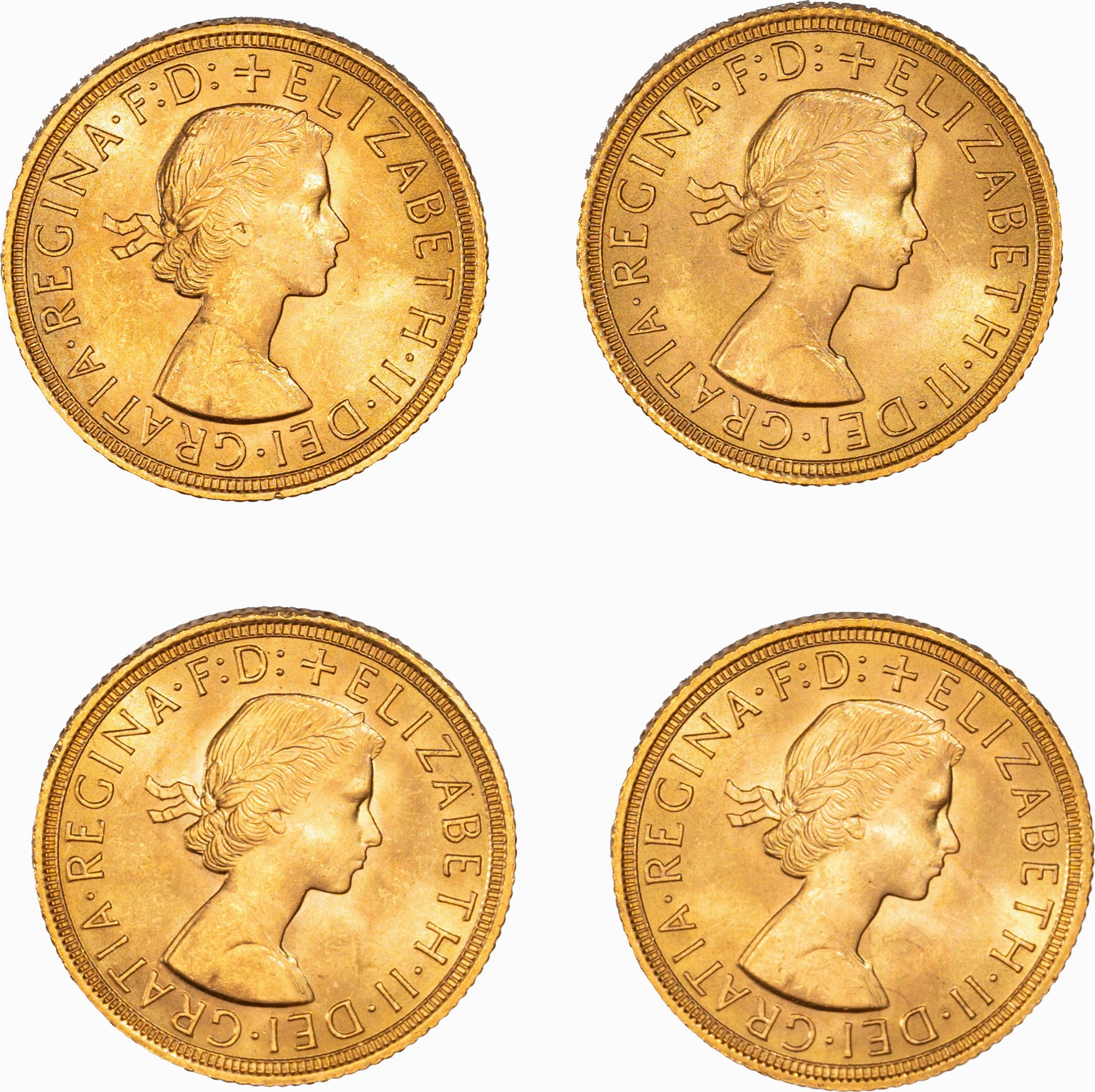 Lotto di quattro esemplari del Sovereign
