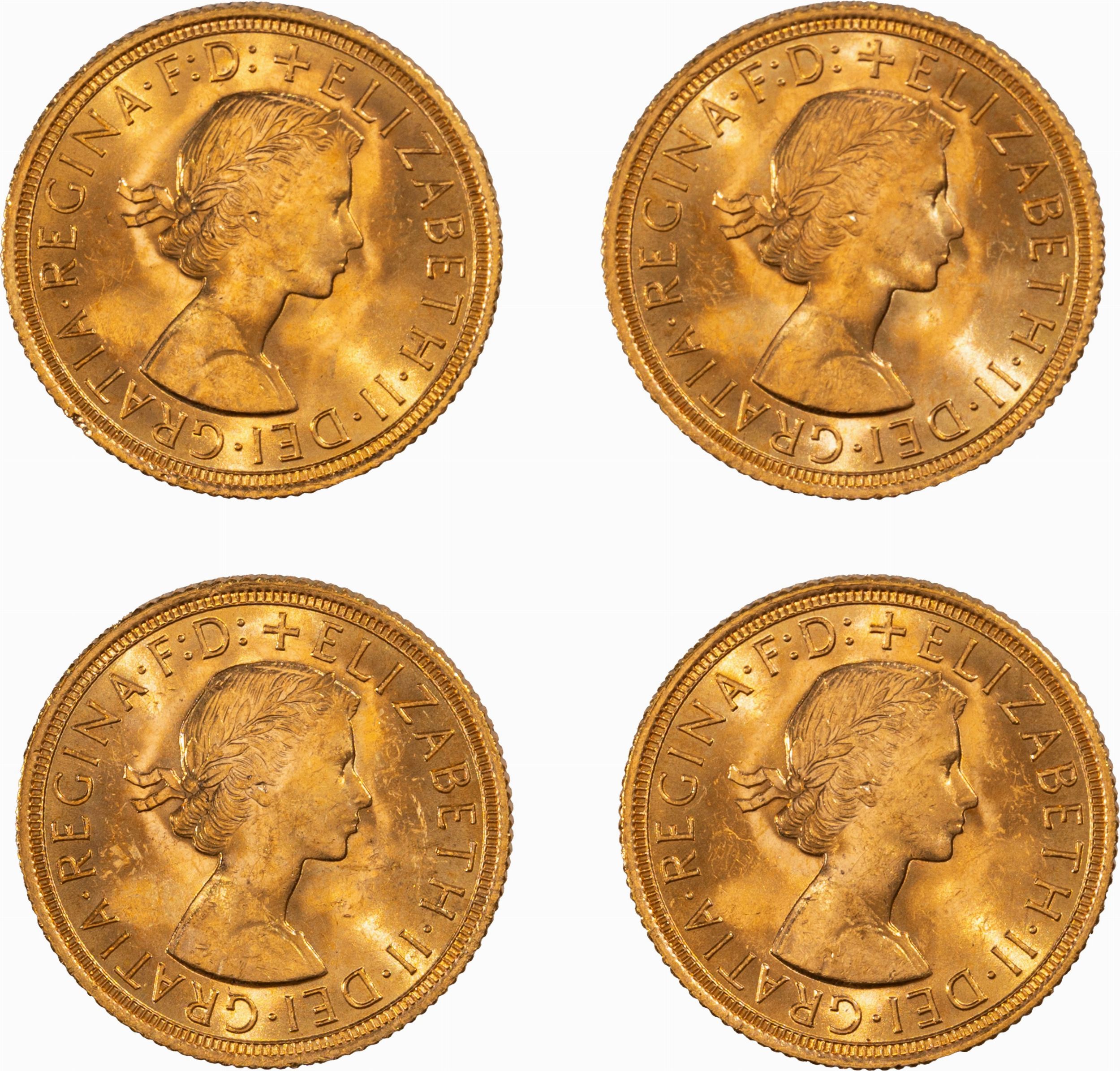 1963 D/ effigie della Regina a d. R/ San Giorgio a cavallo trafigge il drago a d., Zecca di Londra; Metallo: AV, peso totale gr. 31,96. SPL.