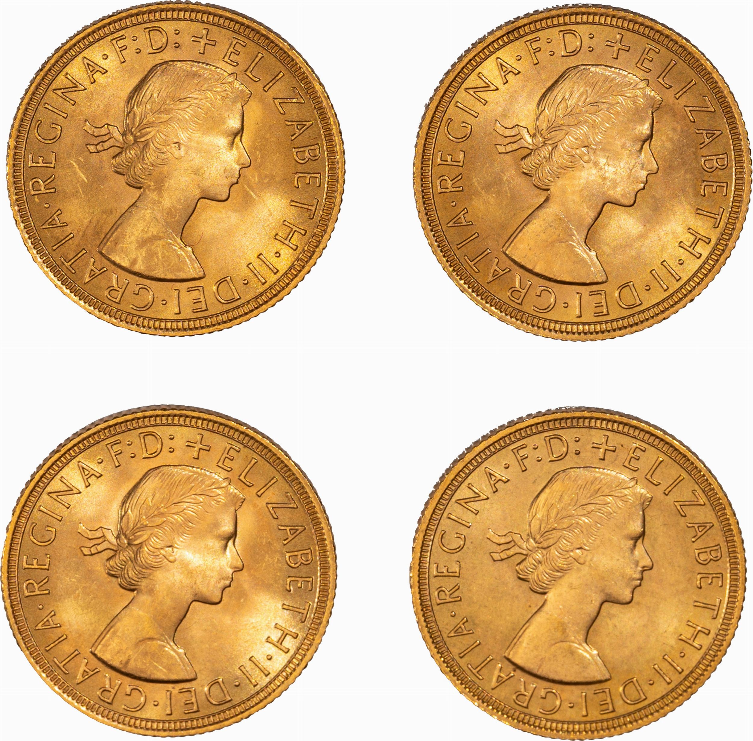1958 D/ effigie della Regina a d. R/ San Giorgio a cavallo trafigge il drago a d., Zecca di Londra; Metallo: AV, peso totale gr. 31,97. SPL.