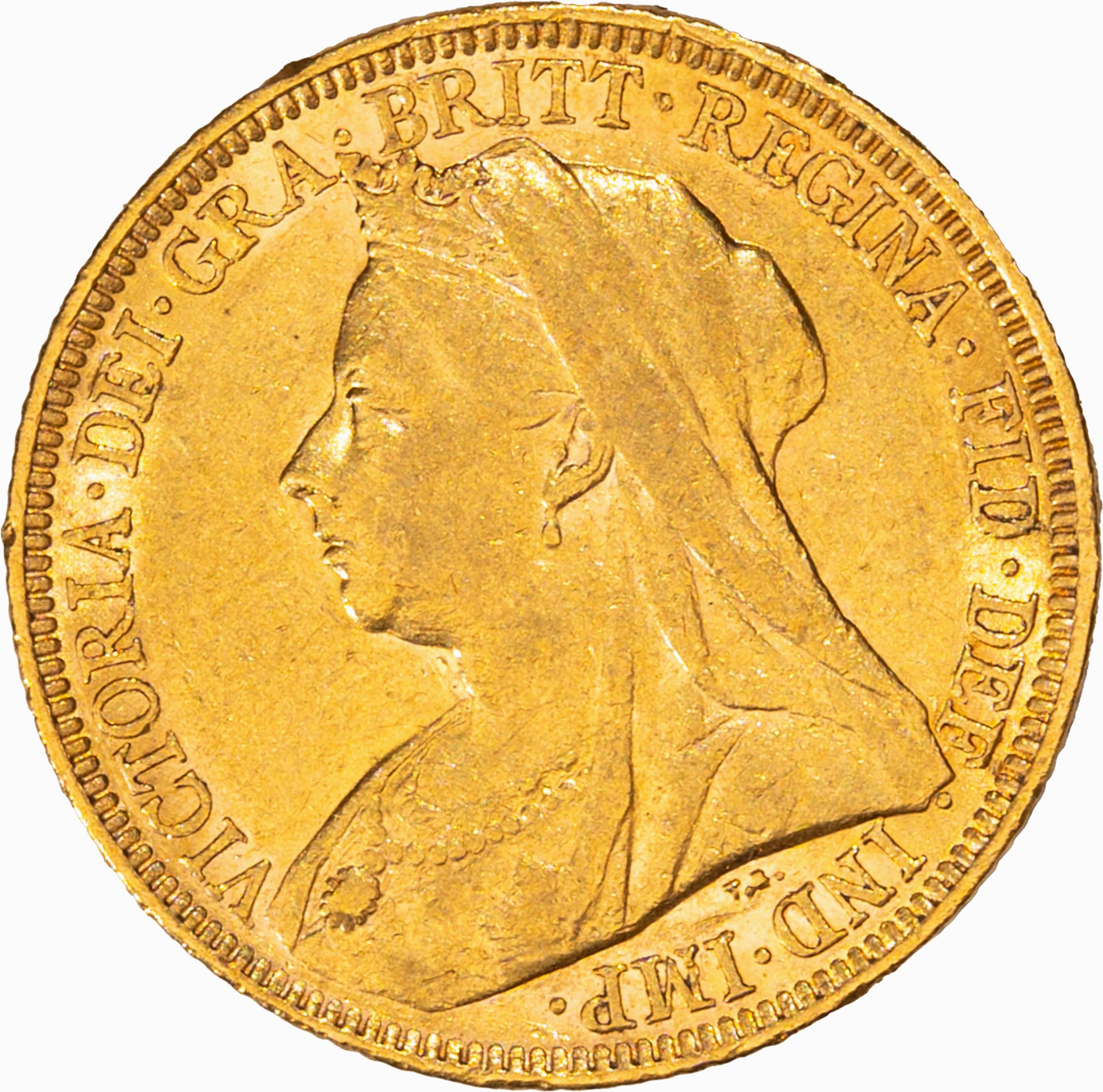 1896 D/ effigie della Regina a s. R/ San Giorgio a cavallo trafigge il drago a d., Zecca di Londra; Metallo: AV, peso gr. 7,94. BB.