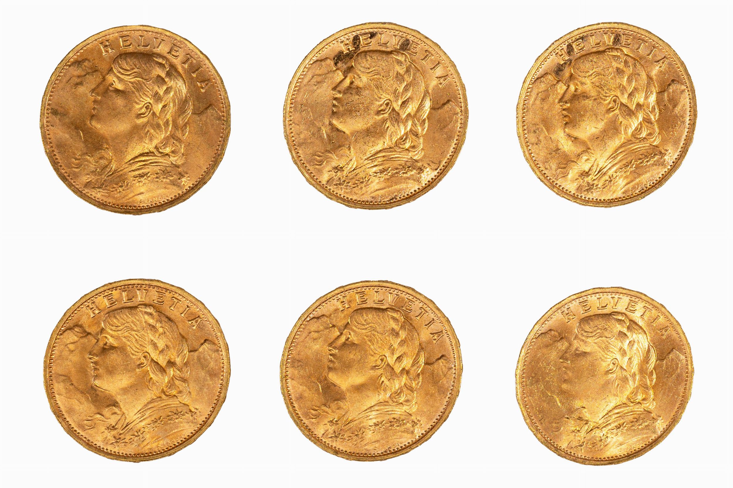 Stato Federale Svizzero - lotto di 6 monete da 20 Franchi