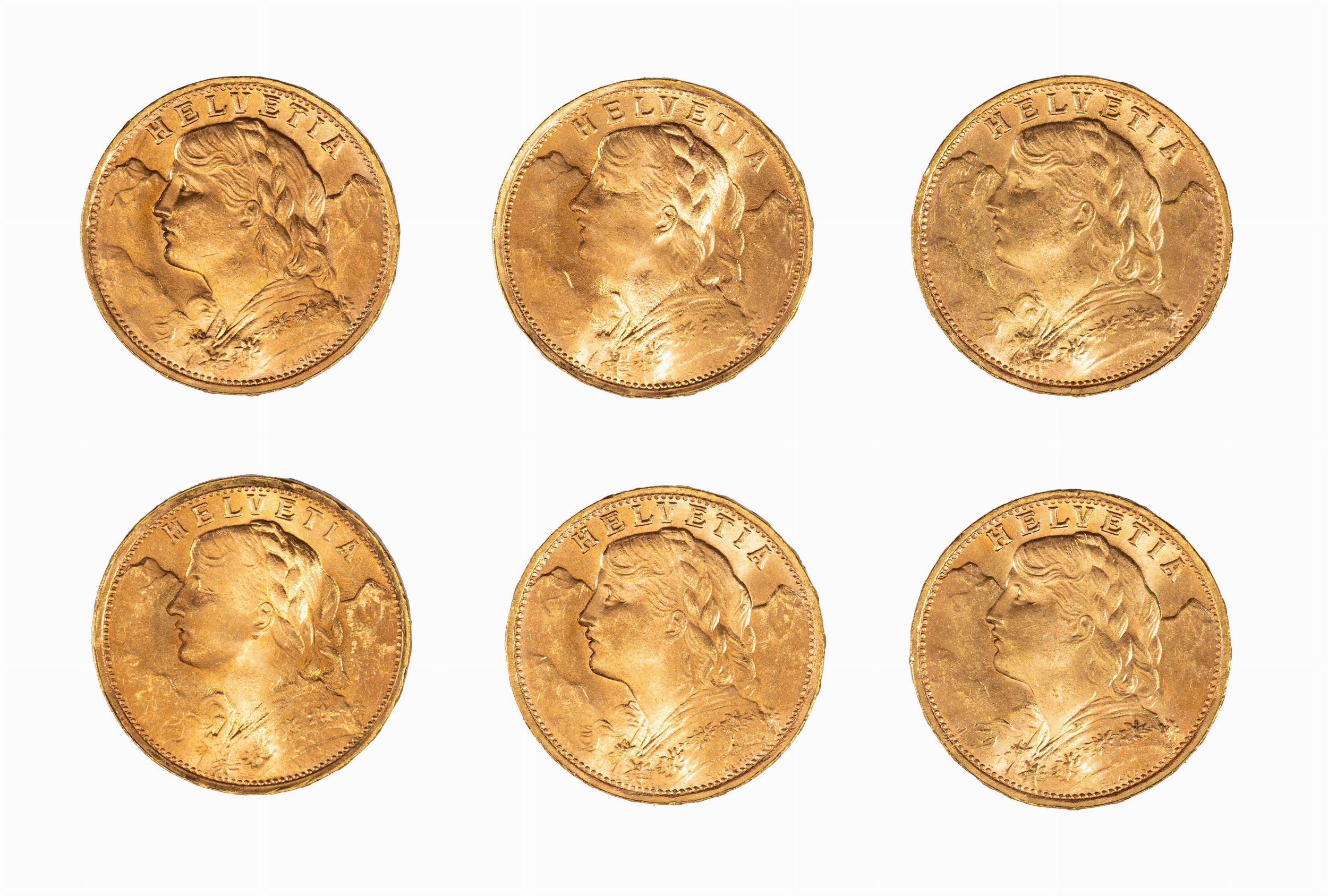 Stato Federale Svizzero - lotto di 6 monete da 20 Franchi