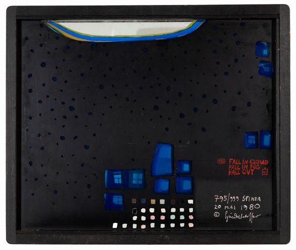 oggetto tridimensionale composto da: sovrapposizione di 5 serigrafie a colori su plexiglas, goffratu, cm. 29,2x35,2x3,8