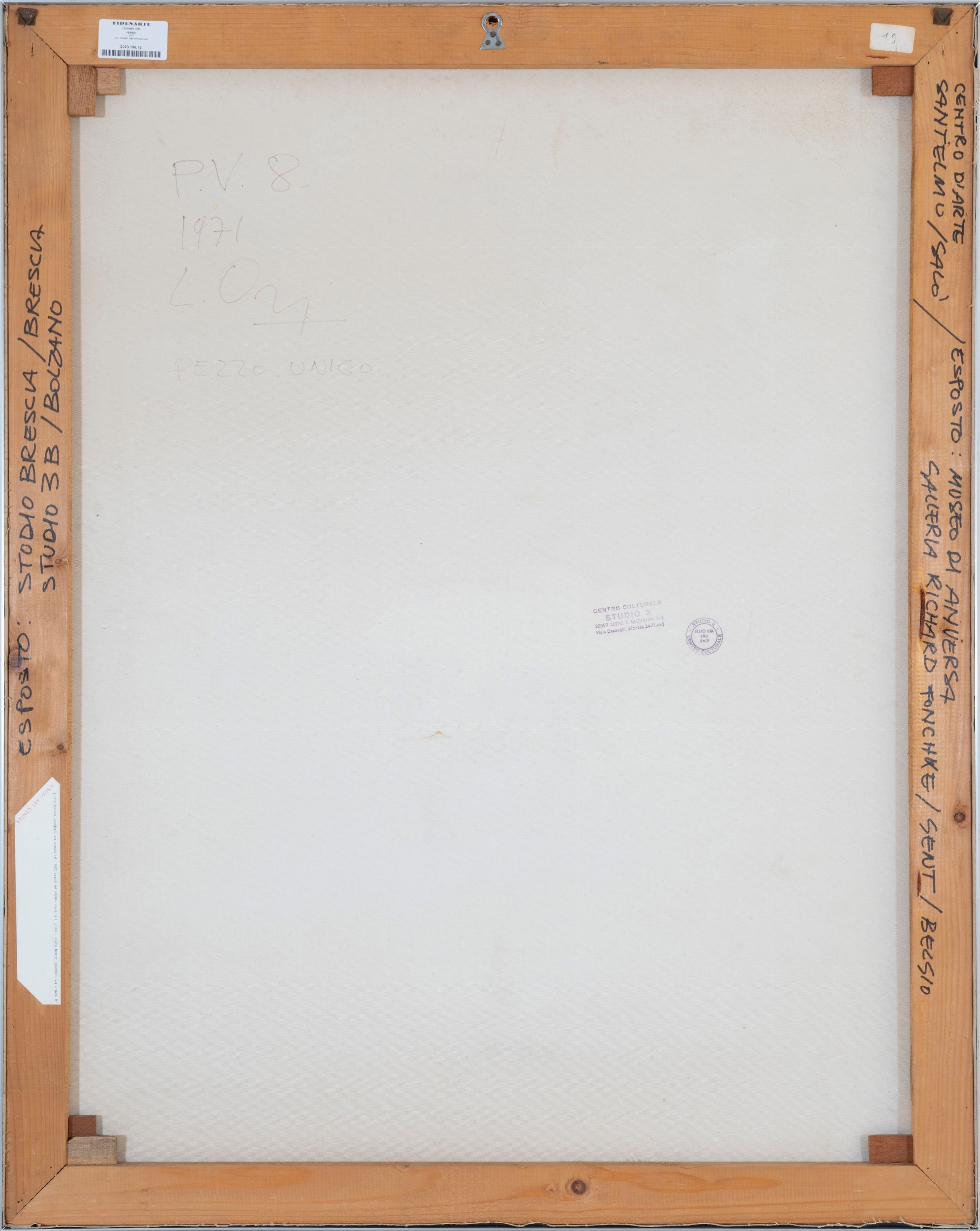 1971 firma e data in basso a destra, firma e titolo al retro