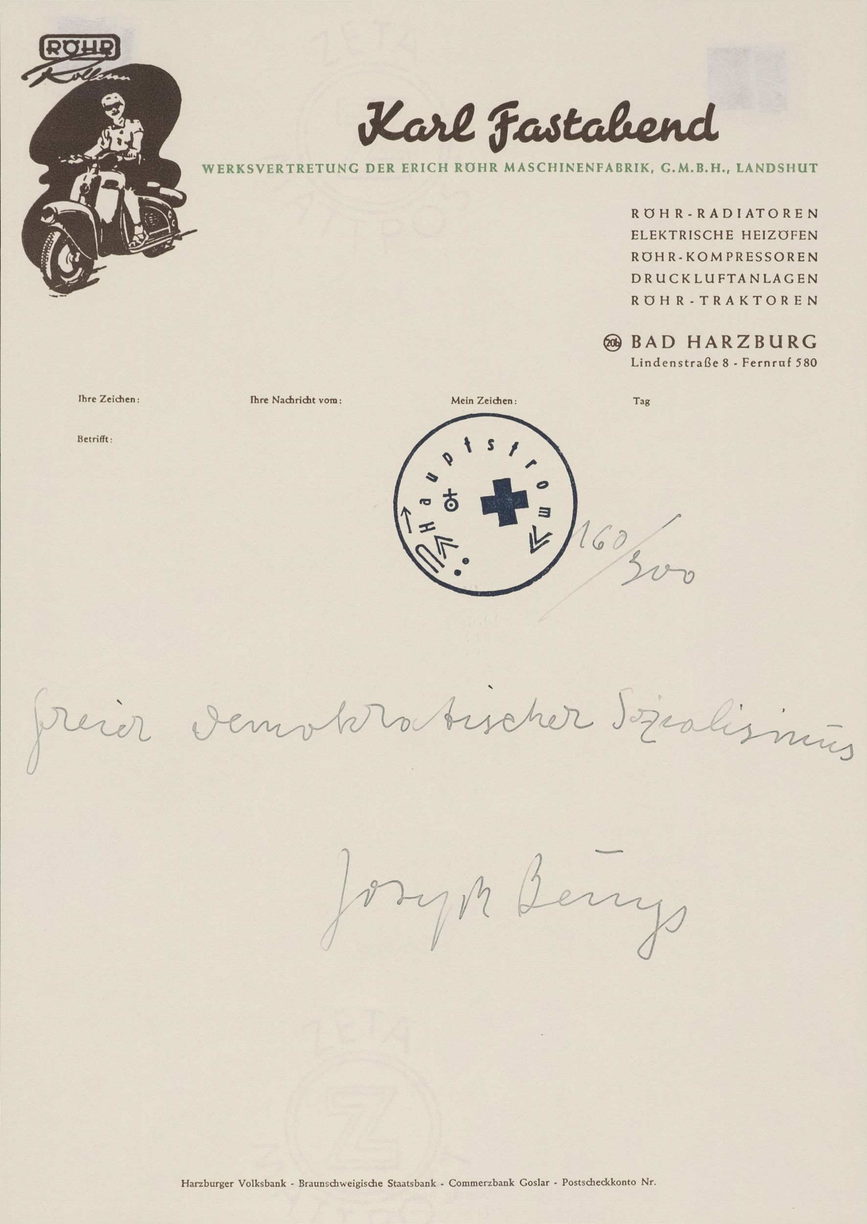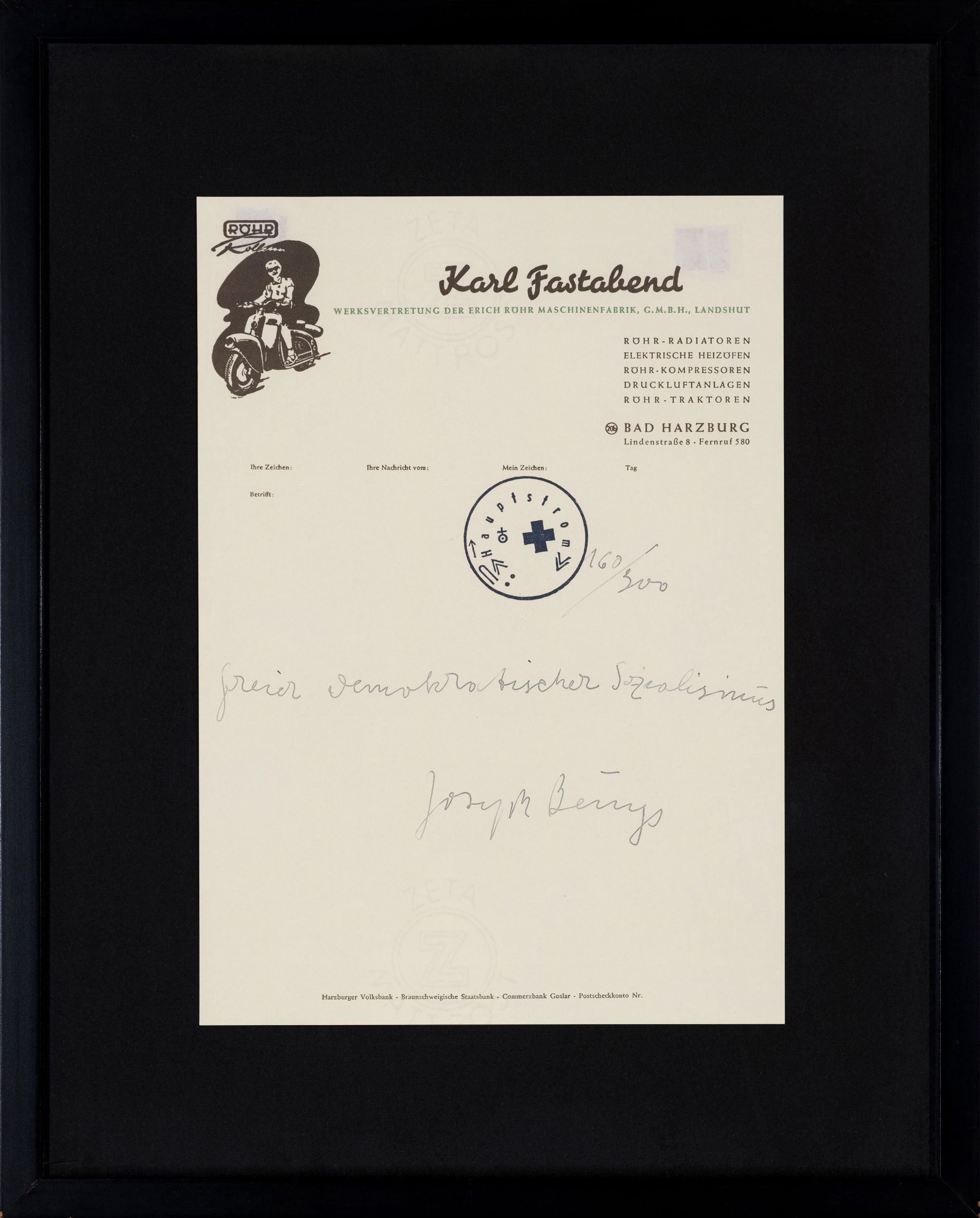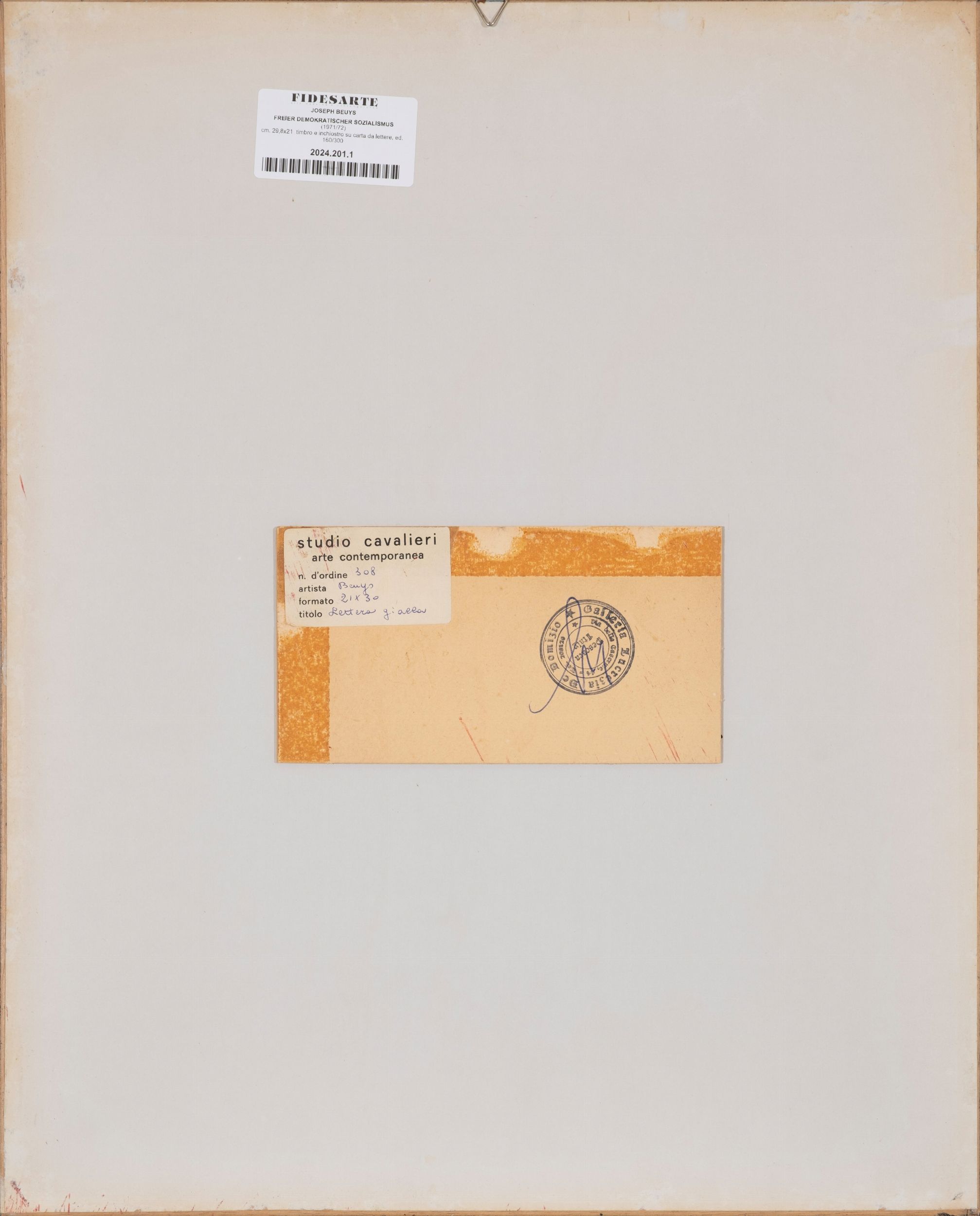timbro e inchiostro su carta da lettere es. 160/300, cm. 29,8x21