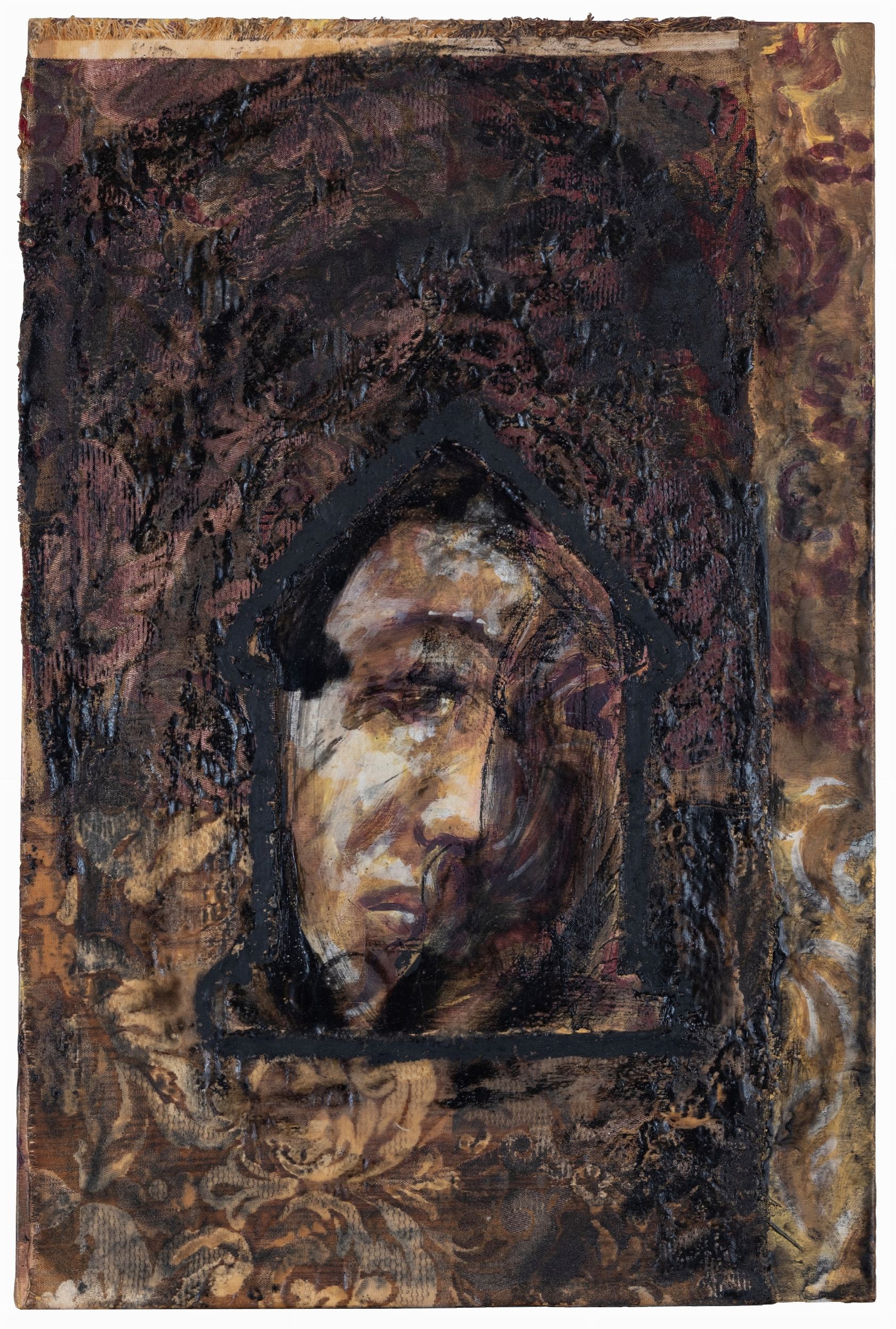 tecnica mista su tela applicata su tavola, cm. 60x40