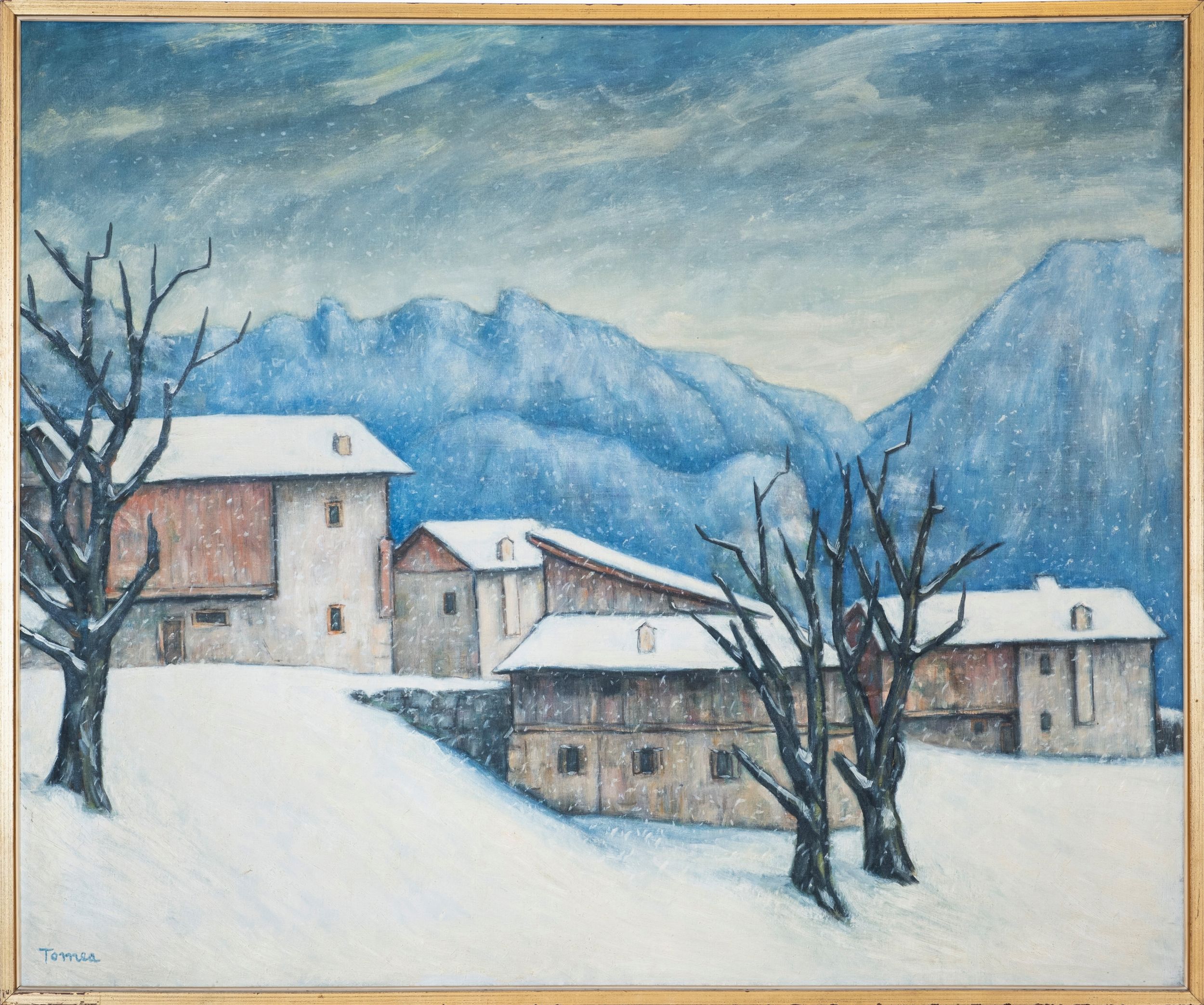 1956 firma in basso a sinistra, firma data e titolo al retro timbro della Galleria Zanini Roma con firma di Giuseppe Zanini al retro