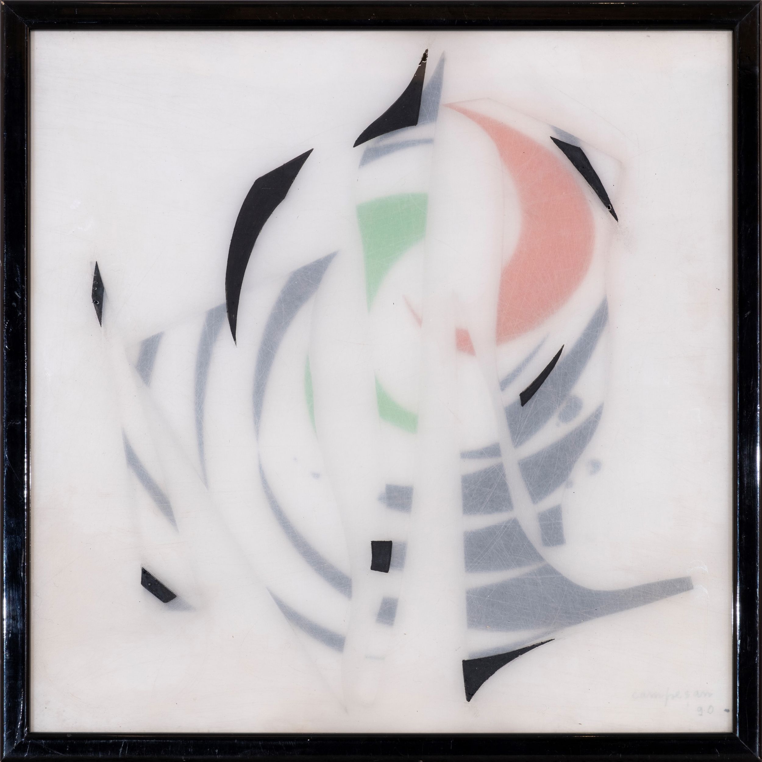 acrilici e collage di plexiglass su tavola, cm. 35x35