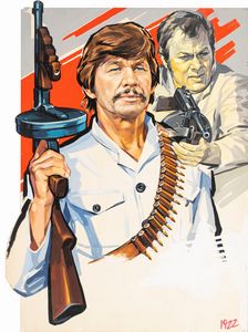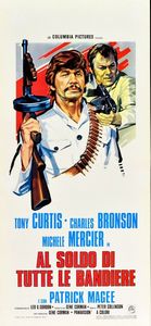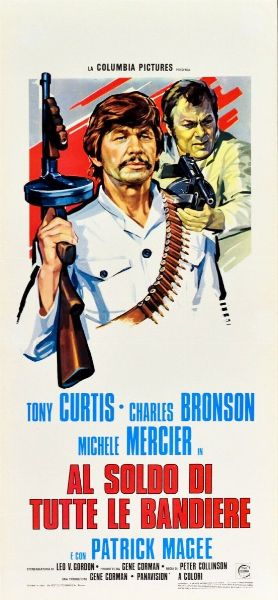 1970 Bozzetto originale realizzato per la locandina ufficiale del film 'Al soldo di tutte le bandiere', diretto da Peter Collinson con Charles Bronson e Tony Curtis nel 1970. Fori ai margini.