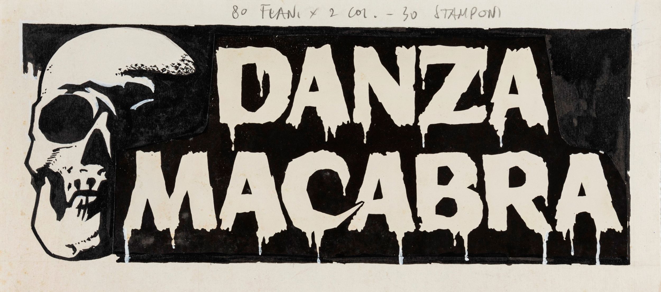 china e pellicola fotografica su cartoncino, 30 x 13,5 cm 1964 Bozzetto originale realizzato per il flano del film 'Danza macabra', diretto da Antonio Margheriti (sotto lo pseudonimo di Anthony M. Dawson) con Barbara Steele e Margarete Robsahm nel 1964.