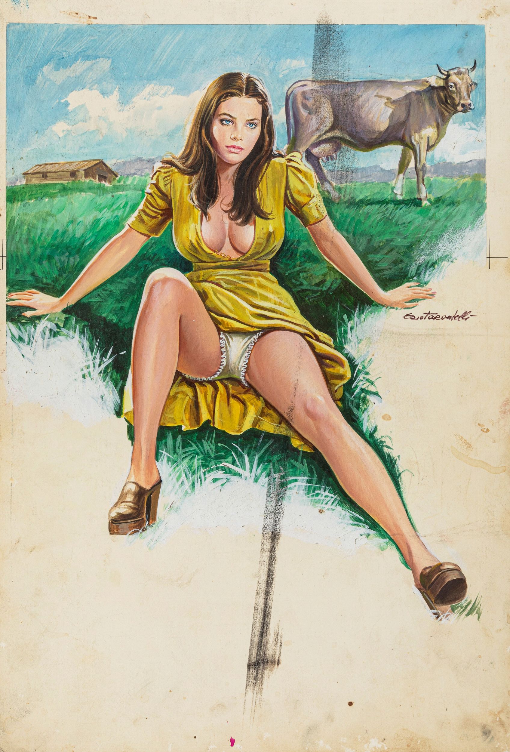 1972 Bozzetto originale realizzato da Tarantelli per la locandina ufficiale del film 'Fiorina la vacca', diretto da Vittorio De Sisti con Ornella Muti e Mario Carotenuto nel 1972. Firmato.