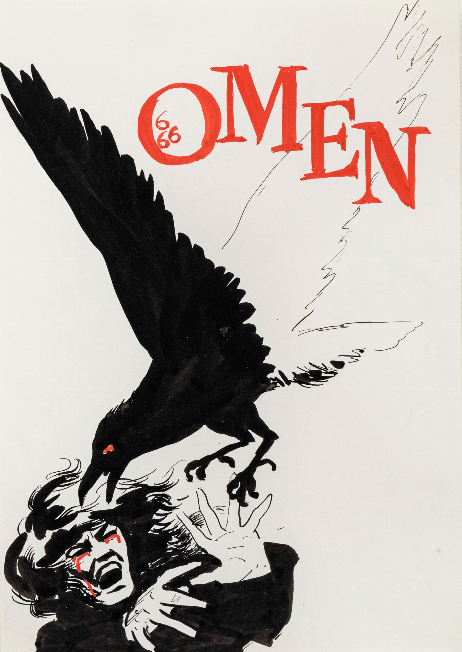 1976 Bozzetto originale realizzato da Papuzza per il flano del film 'Il presagio', diretto da Richard Donner con Gregory Peck e Lee Remick nel 1976.