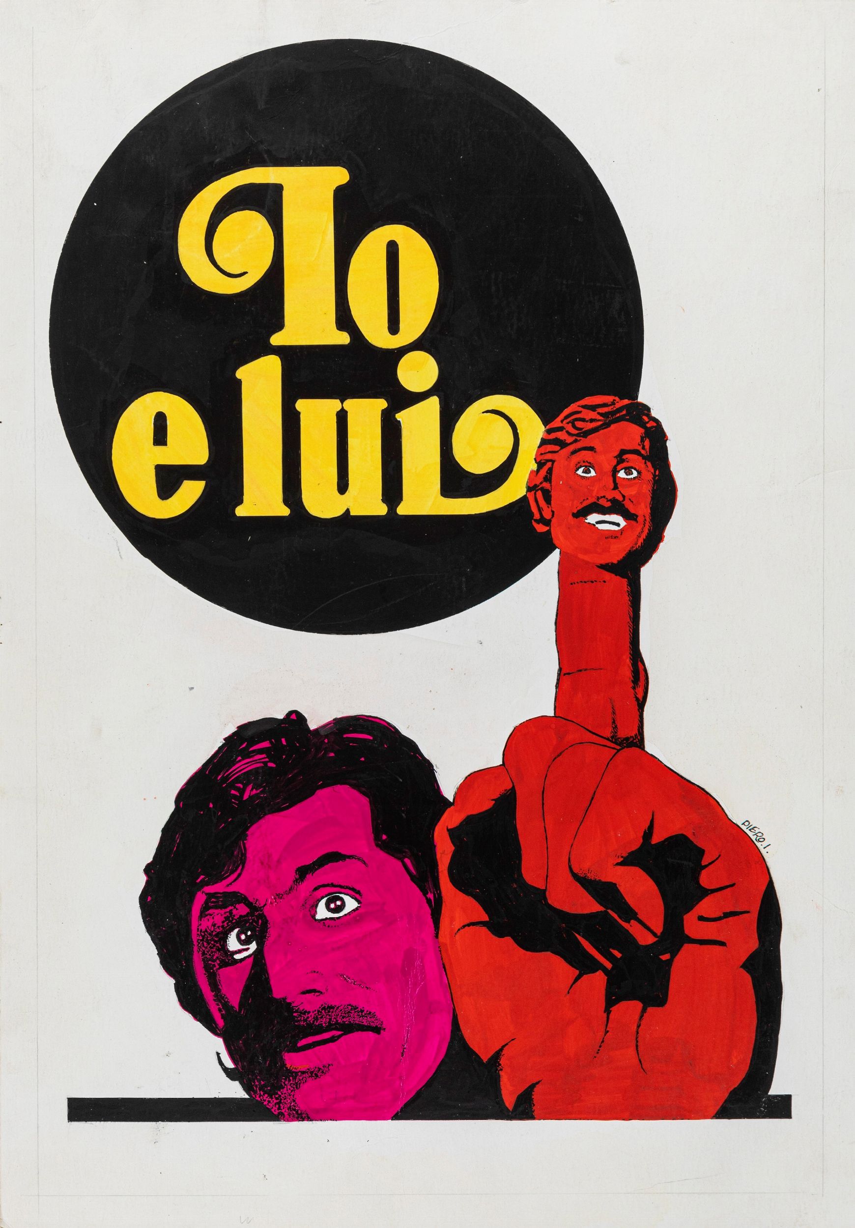 1973 Bozzetto originale realizzato da Iaia per la locandina ufficiale del film Io e lui', diretto da Luciano Salce con Lando Buzzanca e Bulle Ogier nel 1973. Firmato.