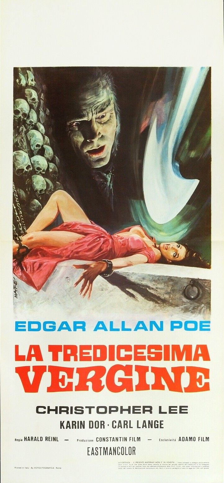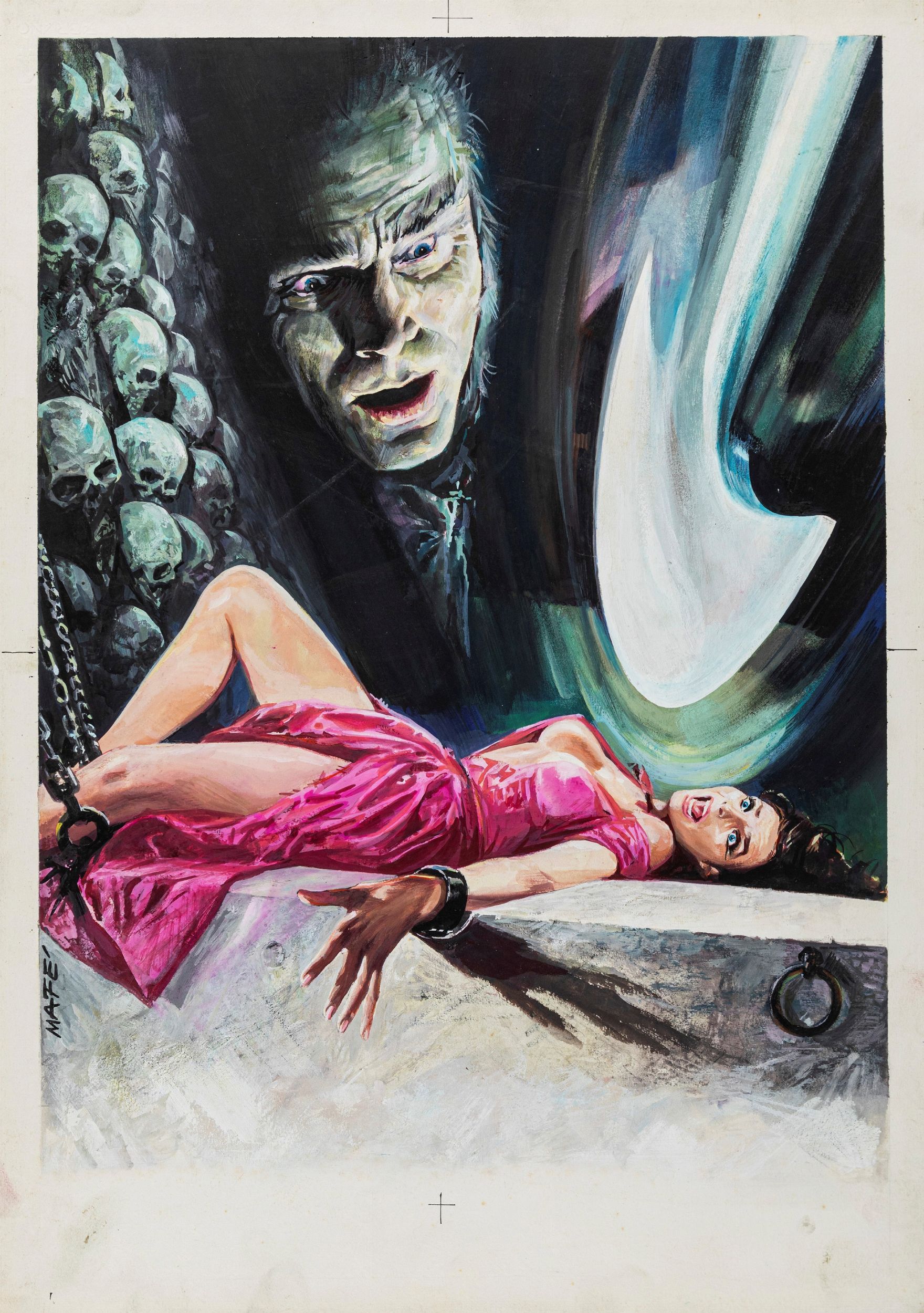 1967 Bozzetto originale realizzato da Mafè per la locandina ufficiale del film 'La tredicesima vergine', diretto da Harald Reinl con Christopher Lee e Lex Barker nel 1967. Firmato.