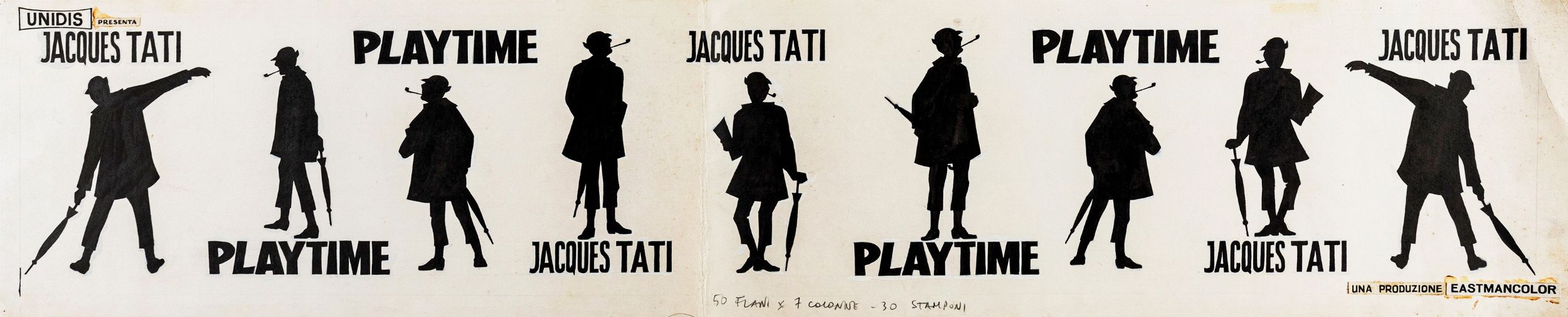 1967 Bozzetto originale realizzato per il flano del film 'Play Time', diretto da Jacques Tati con Jacques Tati nel 1967. Piega verticale al centro.