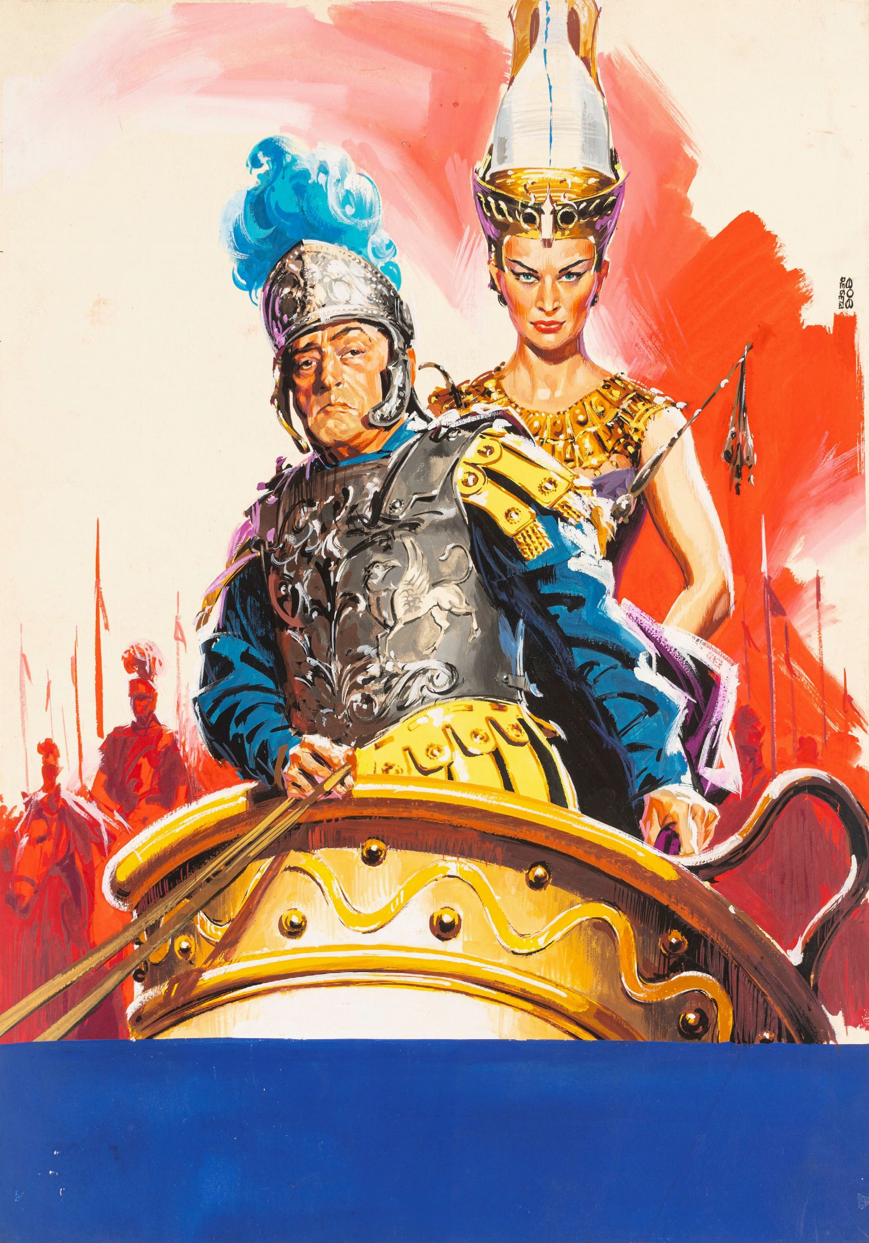 1963 Bozzetto originale realizzato da De Seta per la locandina ufficiale del film 'Totò e Cleopatra', diretto da Fernando Cerchio con Totò, Magali Noel e Moira Orfei nel 1963. Firmato.
