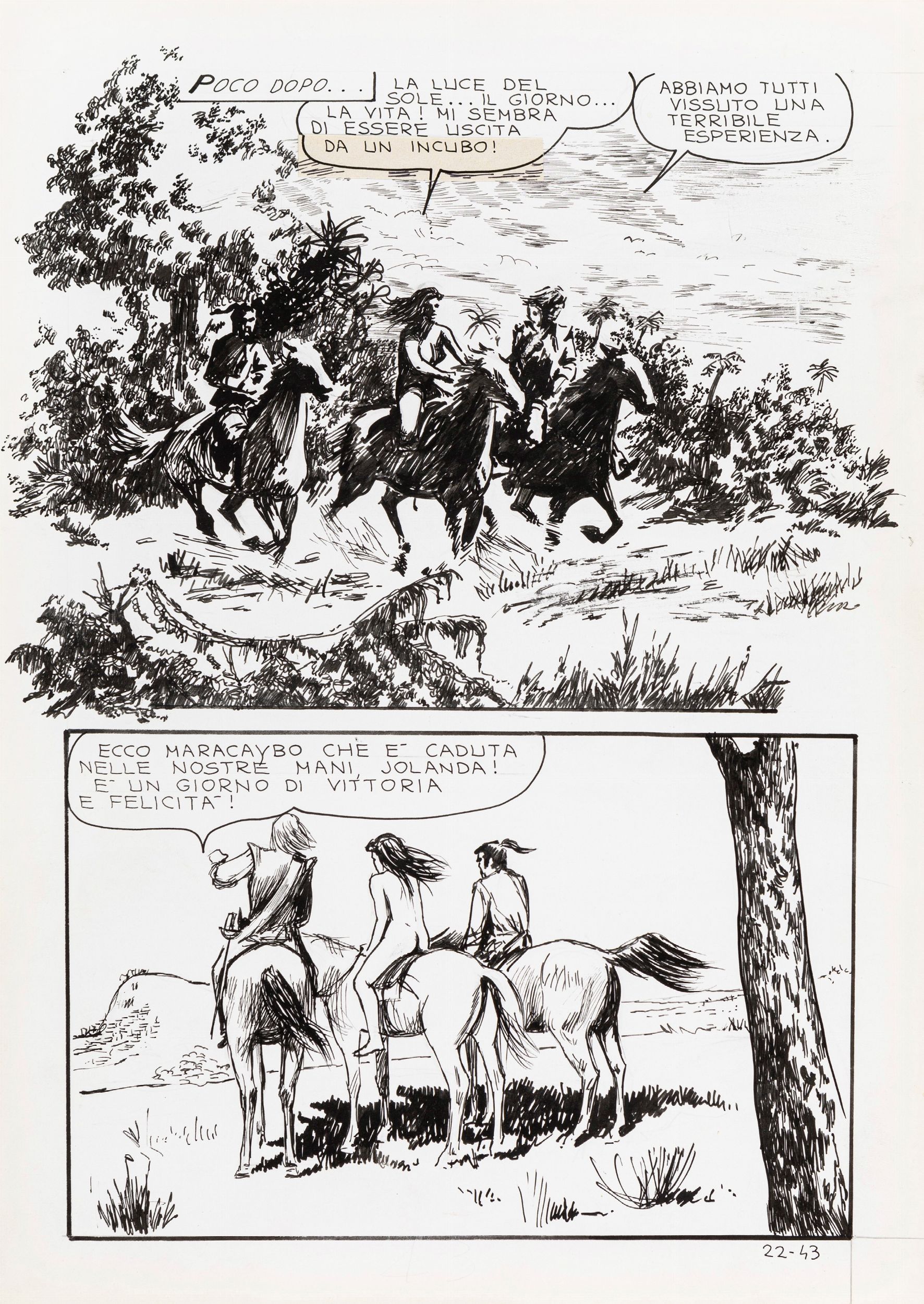 1971 Tavola originale realizzata da Manara per 'Capelli al vento', edita su Jolanda de Almaviva n. 22 a pag. 43 dalla Ediperiodici nel 1971.