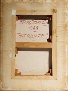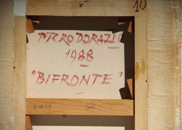 1988 Firma, data, titolo 'Piero Dorazio, 1988, Bifronte'; Timbro dell'artista con n. 2073 (al retro)