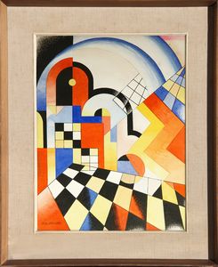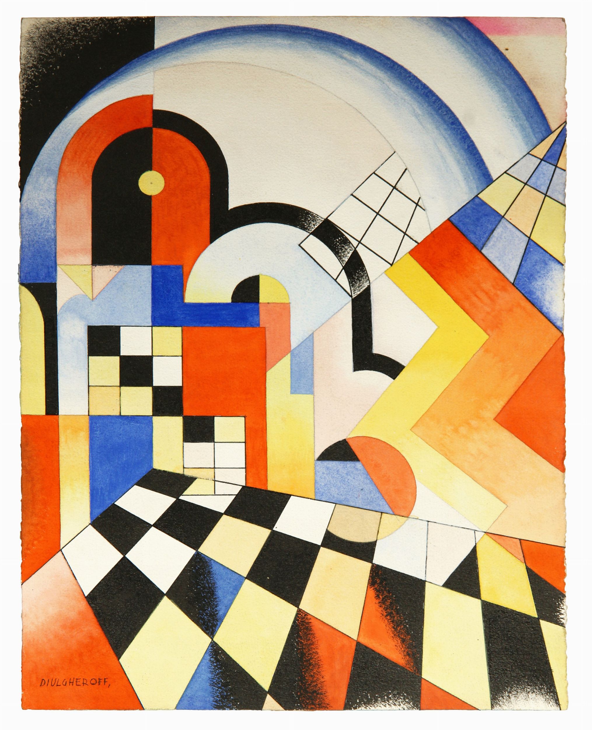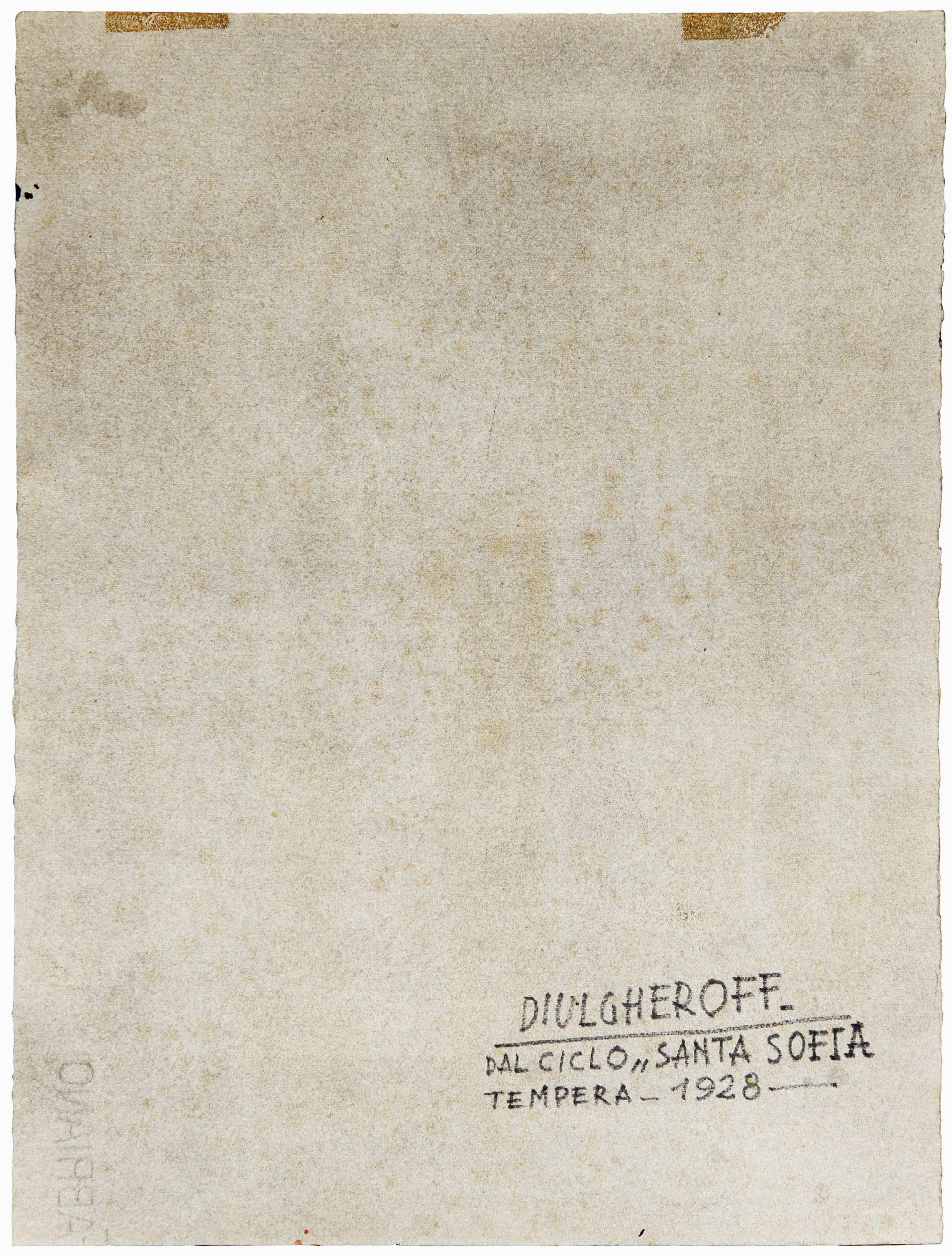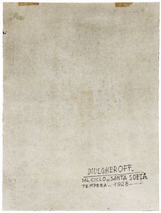 1928 Firma 'Diulgheroff' (in basso a sinistra) Firma, titolo, tecnica, data 'Diulgheroff, Dal ciclo Santa Sofia, tempera, 1928' (al retro)