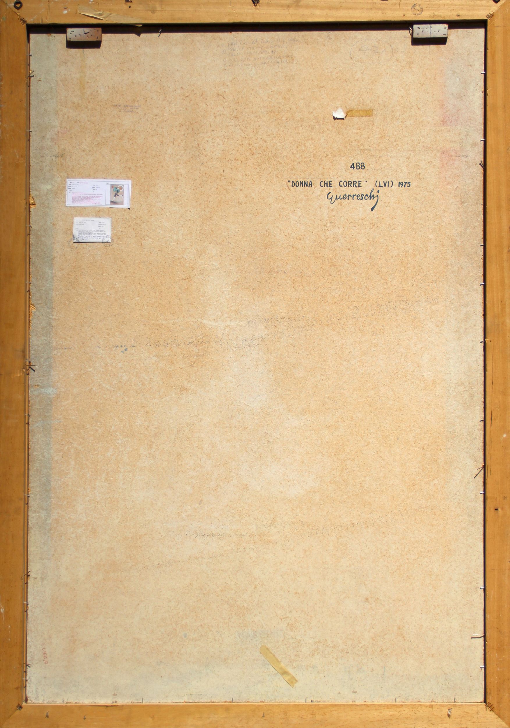1975 Numerazione, titolo, data, firma '488, Donna che corre, LVI 1975, Guerreschi';  etichetta e timbro della collezione Guerrieri (al retro)