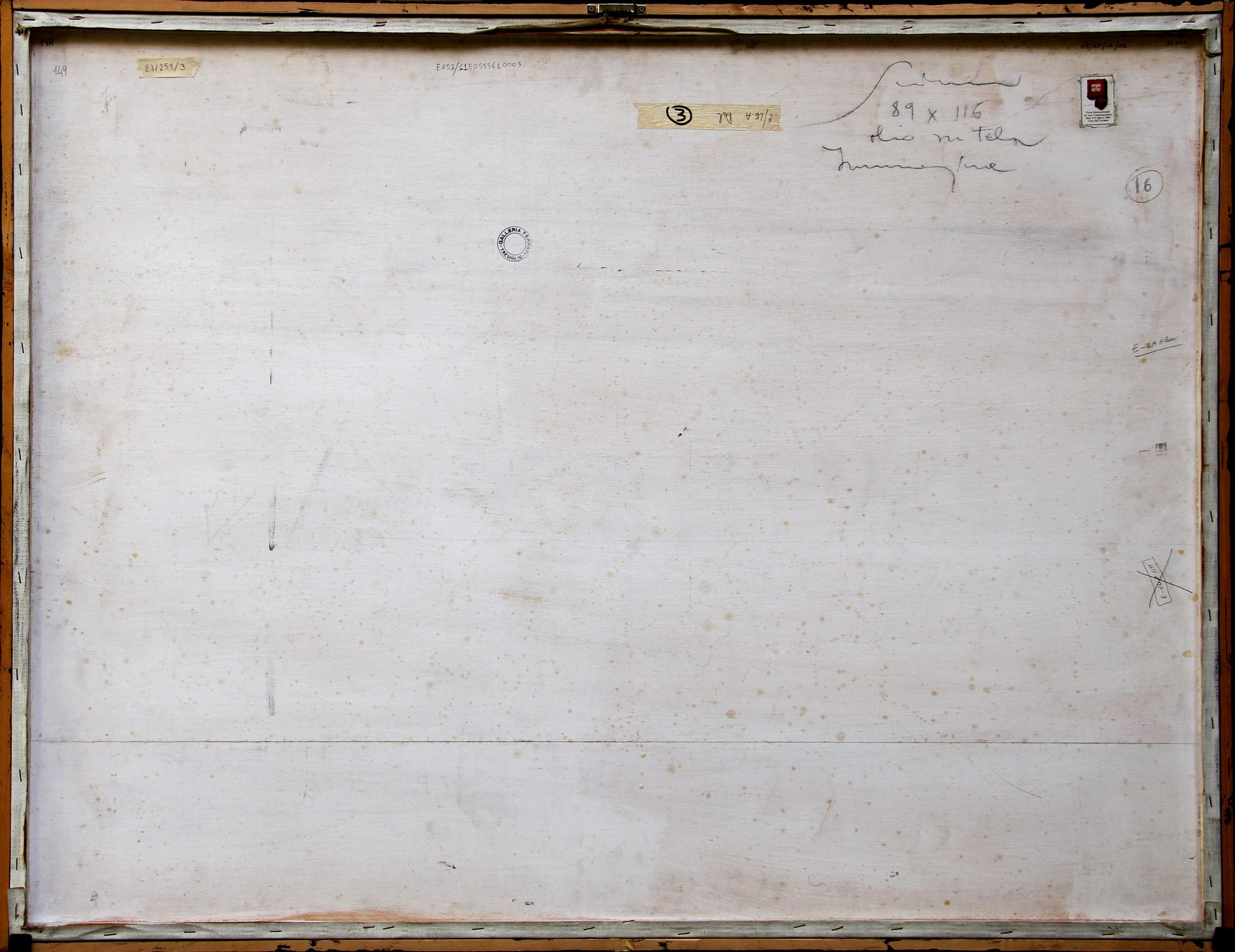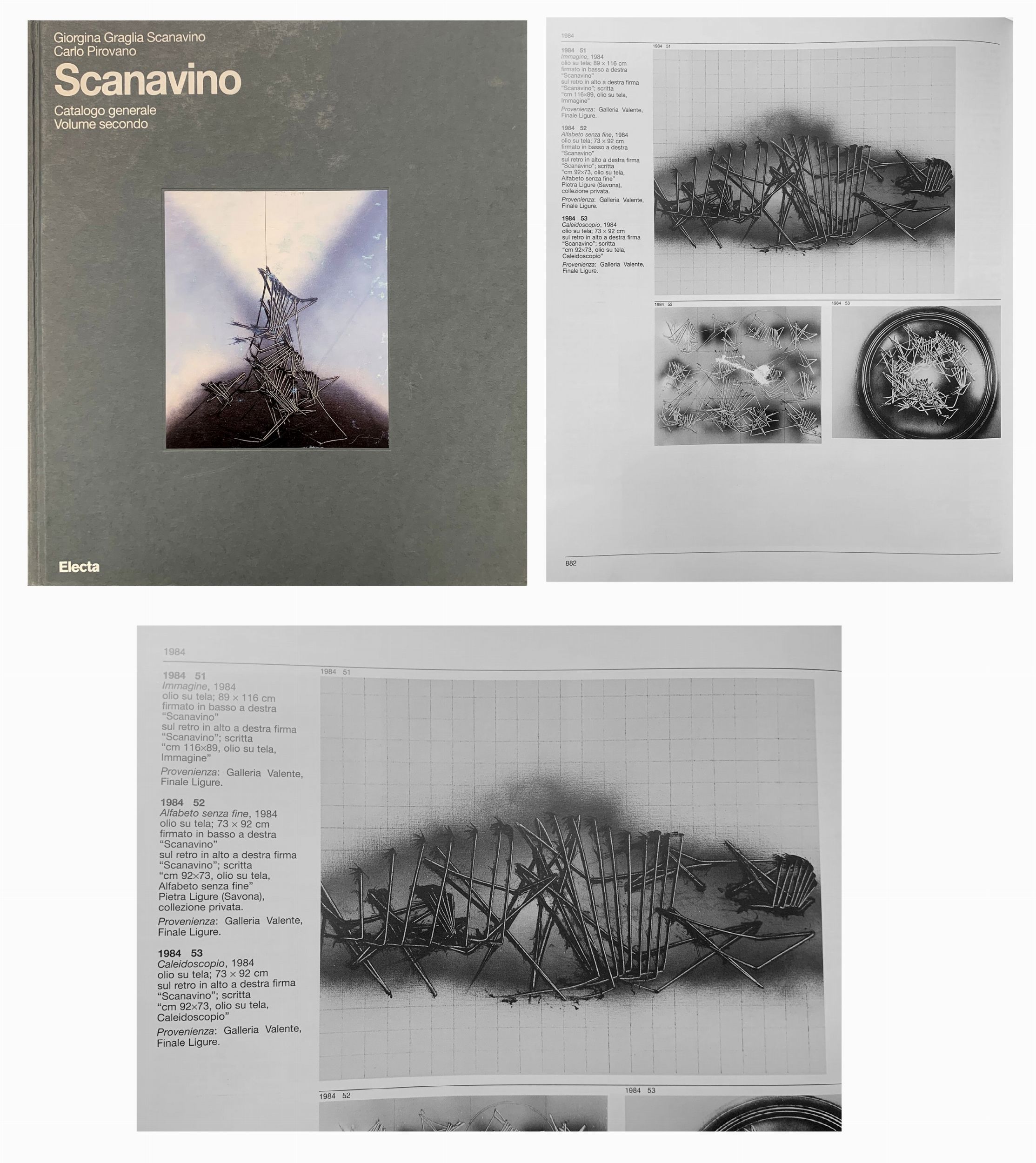 1984 Firma 'Scanavino' (in basso a destra) Firma, misura, tecnica, titolo 'Scanavino, 89x116, olio su tela, Immagine'; etichetta di Fiera Internazionale di Arte Contemporanea, Bari (al retro)