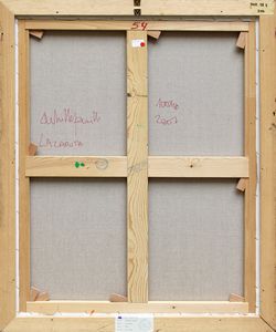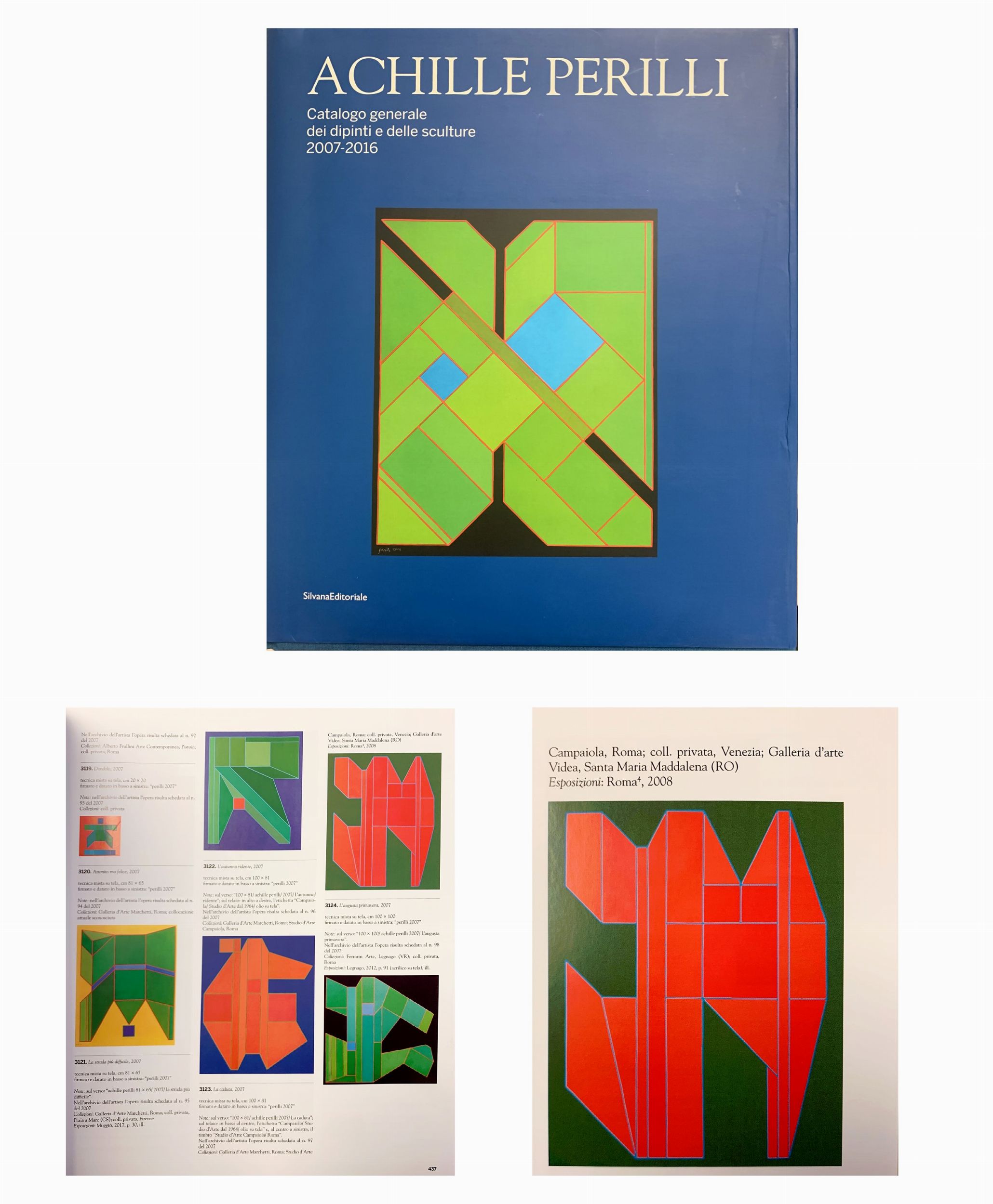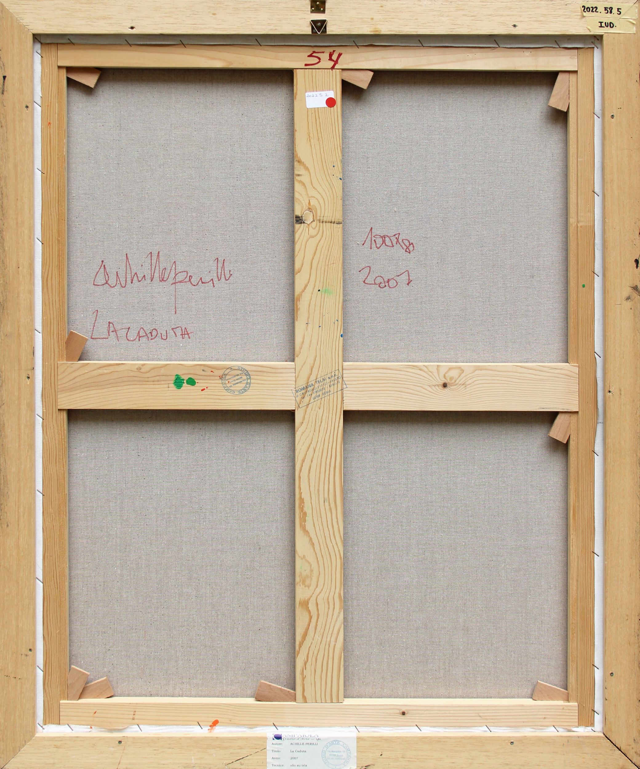 2007 Firma, data 'Perilli, 2007' (in basso a sinistra) Firma, titolo, misure, data 'Achille Perilli, La caduta, 100x81, 2007'; etichetta e timbro di Studio d'Arte Campaiola (al retro)