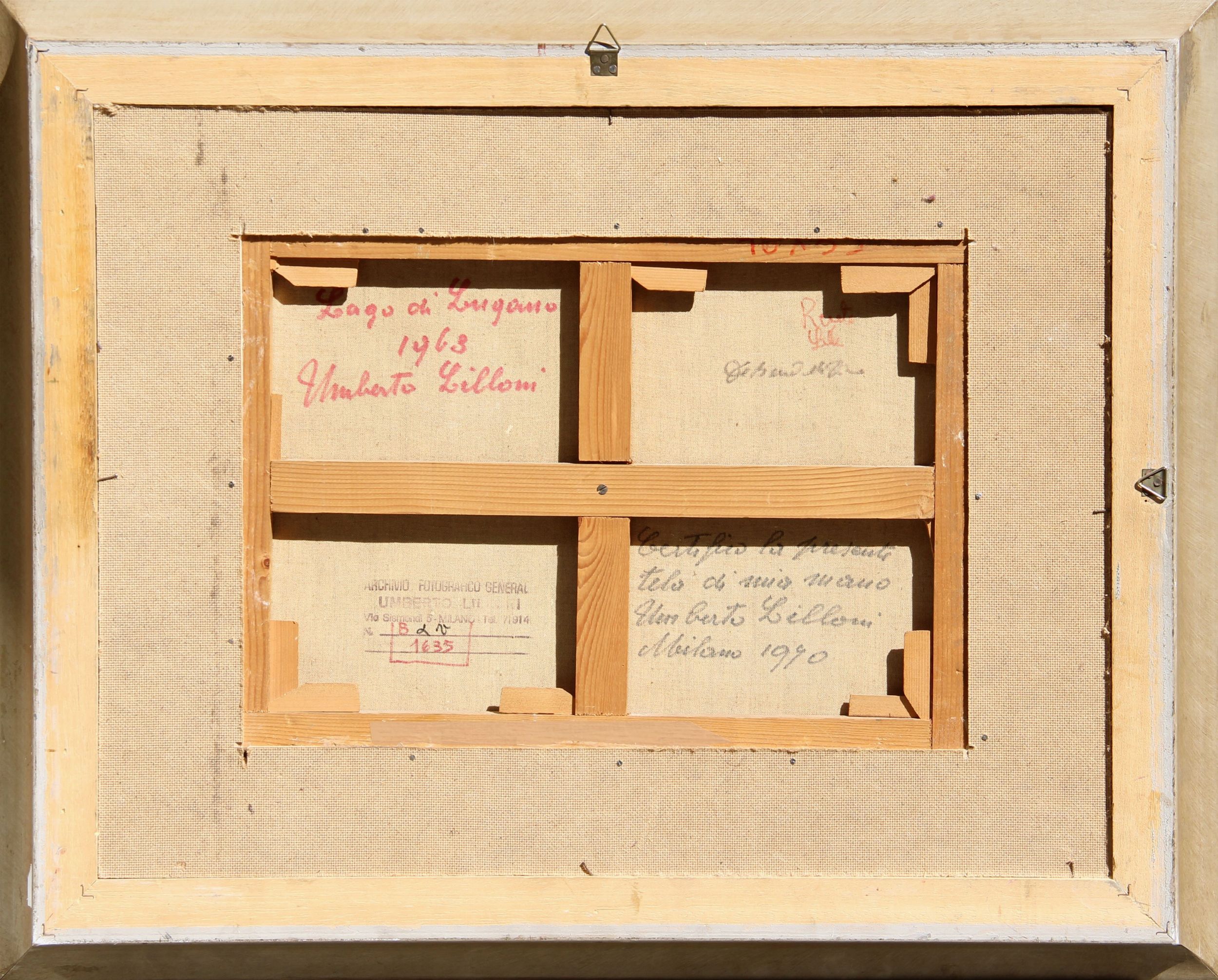 olio su tela, cm 33x46 1968 Firma 'Lilloni' (in basso a destra) Titolo, data, firma 'Lago di Lugano, 1968, Umberto Lilloni'; dichiarazione di autenticità 'Certifico la presente tela di mia mano, Umberto Lilloni, Milano 1990'; timbro dell'Archivio Fotografico Generale Umberto Lilloni, con n. 1635' (al retro)