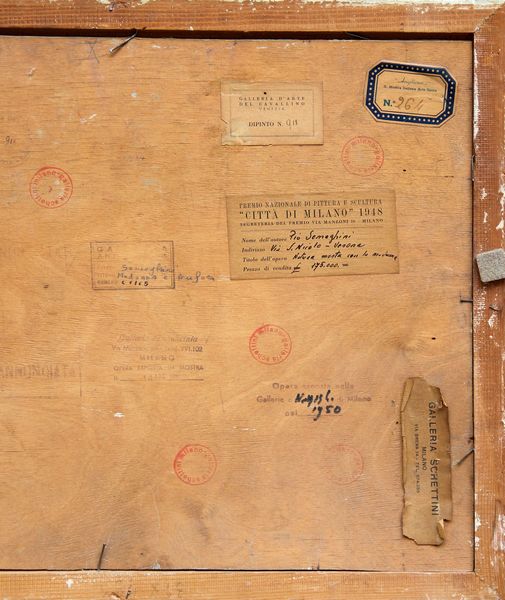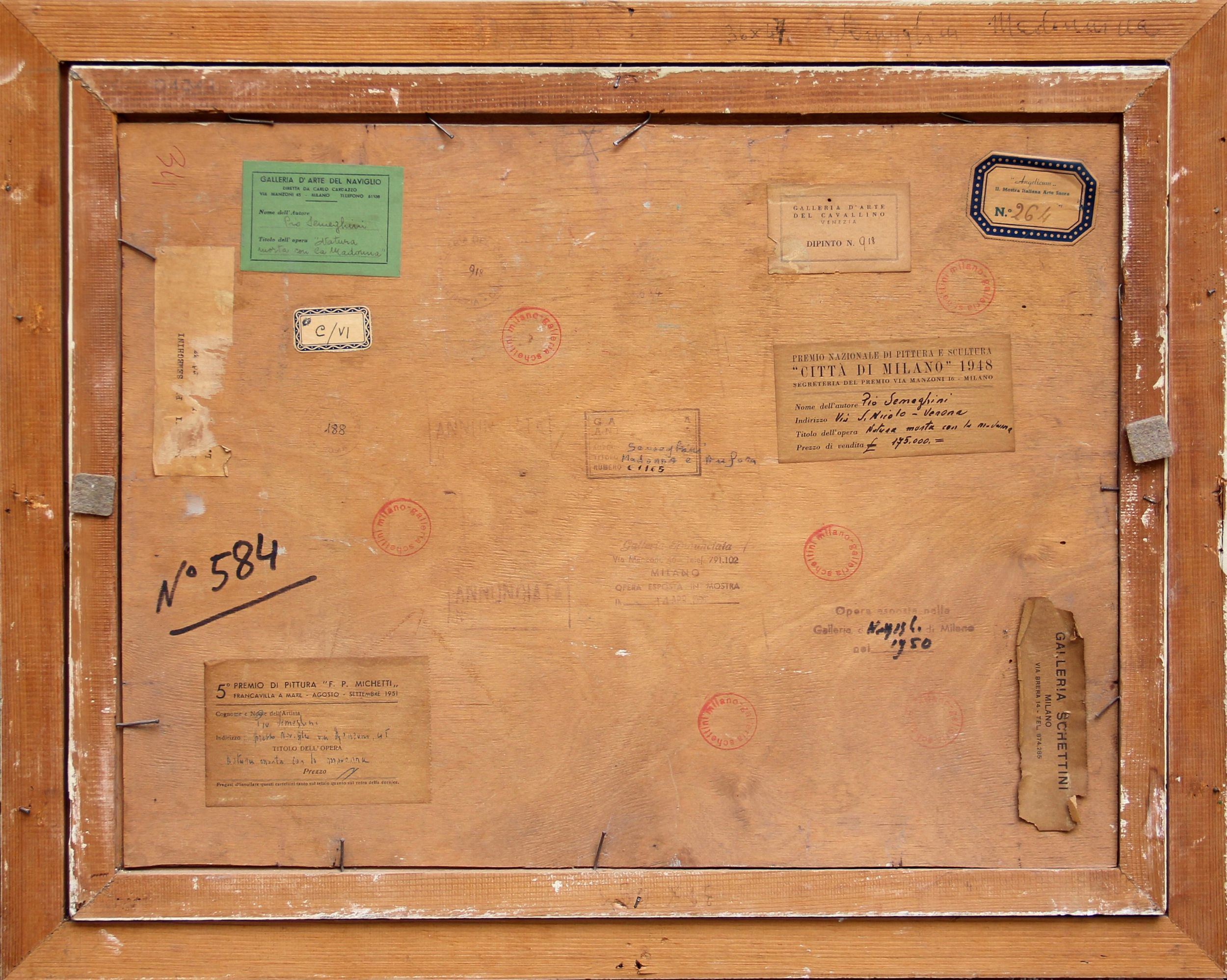 olio su tavola, cm 38x49 1942 Firma, data 'Semeghini, 1942' (in basso a destra) Etichetta della Galleria d'arte del Naviglio, Milano; etichetta e timbro della Galleria Schettini, Milano; etichetta e timbro della Galleria d'arte del Cavallino, Venezia; timbro della Galleria Annunciata, Milano; etichetta del 5° Premio di Pittura 'F. P. Michetti'; etichetta del Premio Nazionale di Pittura e Scultura 'Città di Milano'; etichetta di 'Angelicum', II Mostra Italiana Arte Sacra di Milano (al retro)