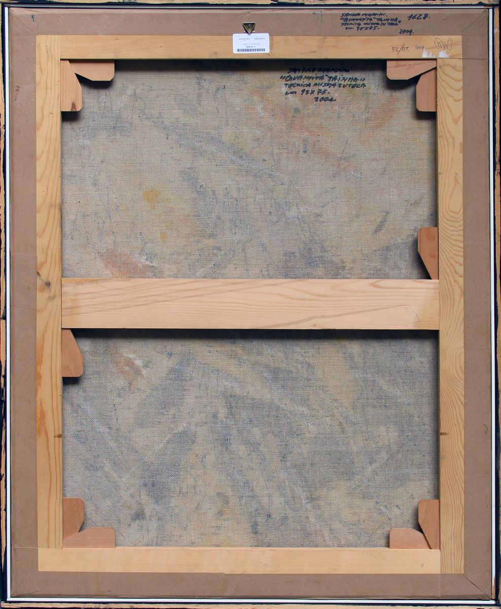 2004 Firma, titolo, tecnica, misura, data 'Sandro Martini, Quantità Tainha, tecnica mista su tela, cm. 95x75, 2004' (al retro)