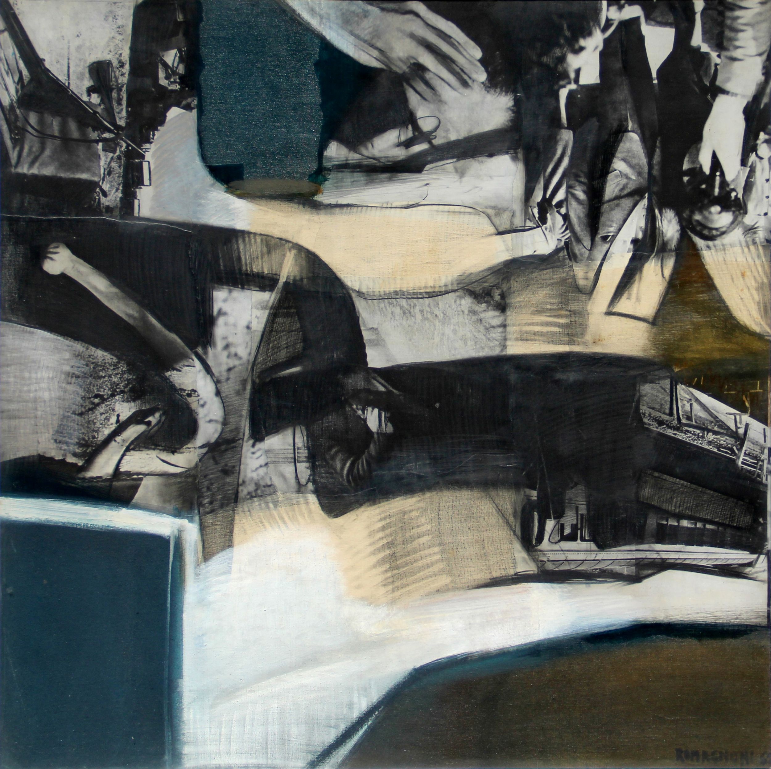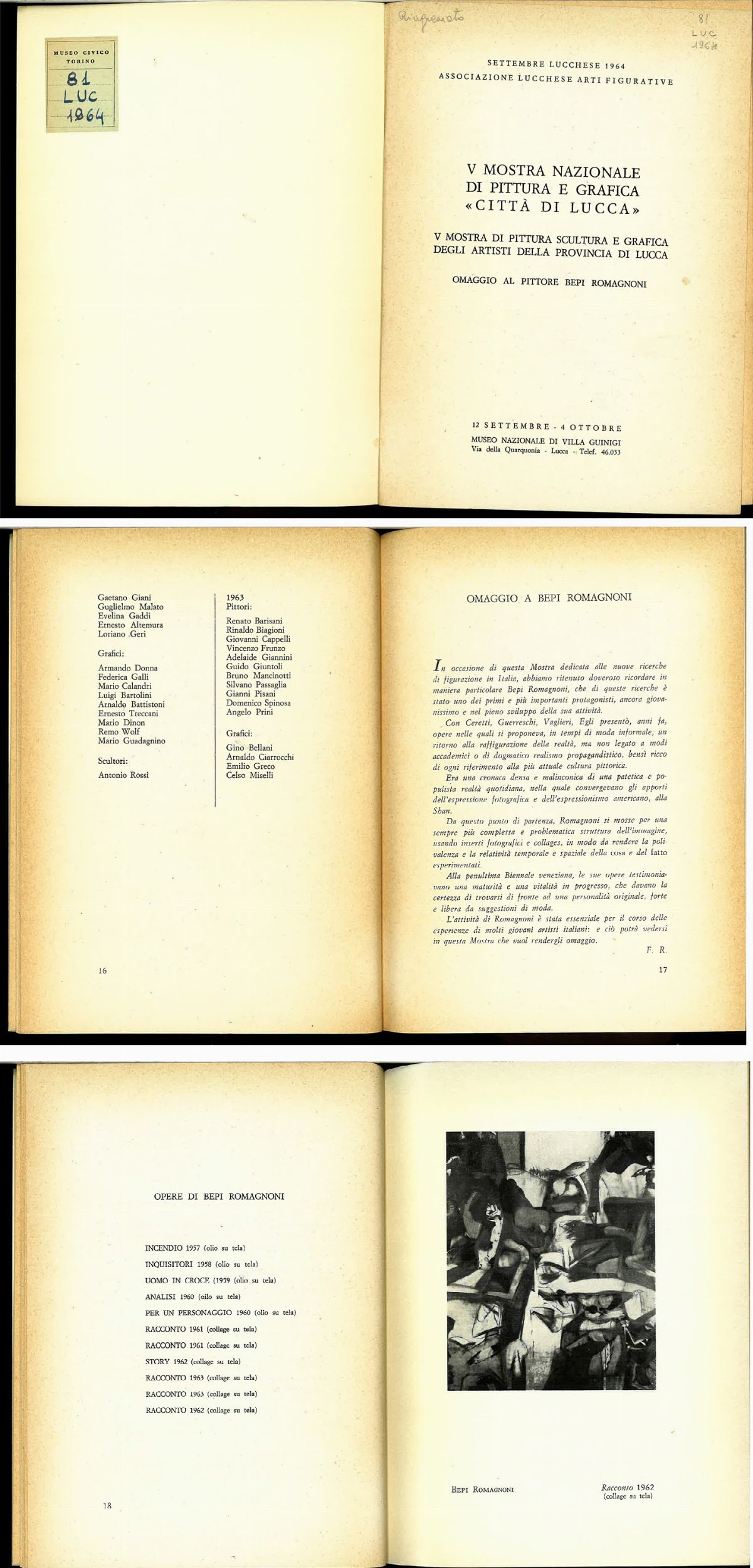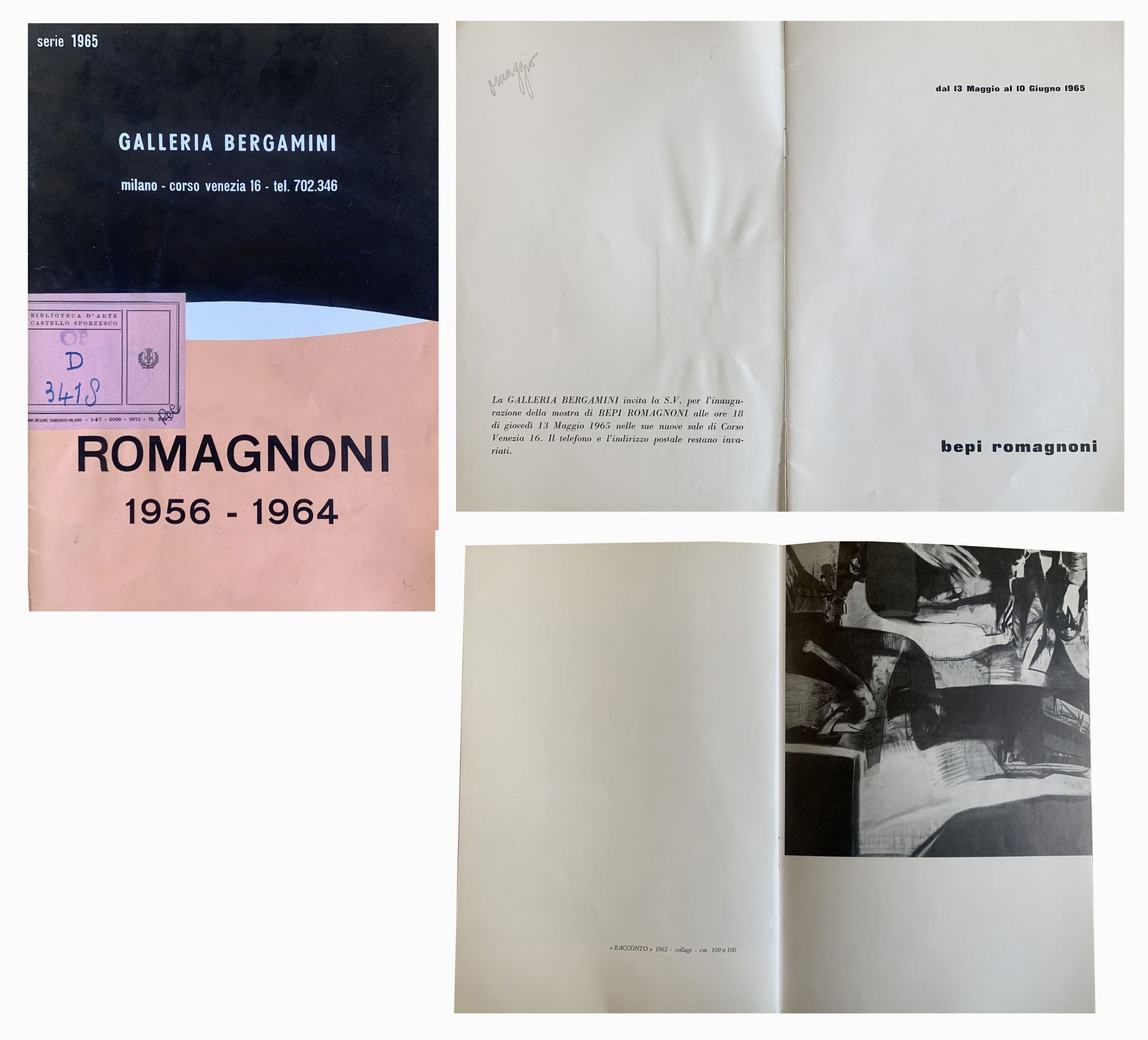 1962 Firma, data 'Romagnoni, 62' (in basso a destra) Firma, titolo, data 'Romagnoni, Racconto, aprile maggio 62'; timbro di La permanente galleria d'arte, Cesena; timbro di Galleria Bergamini, Milano; etichetta e timbro della Collezione Guerrieri; etichetta della Terza mostra nazionale di pittura e grafica di Lucca (al retro)