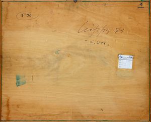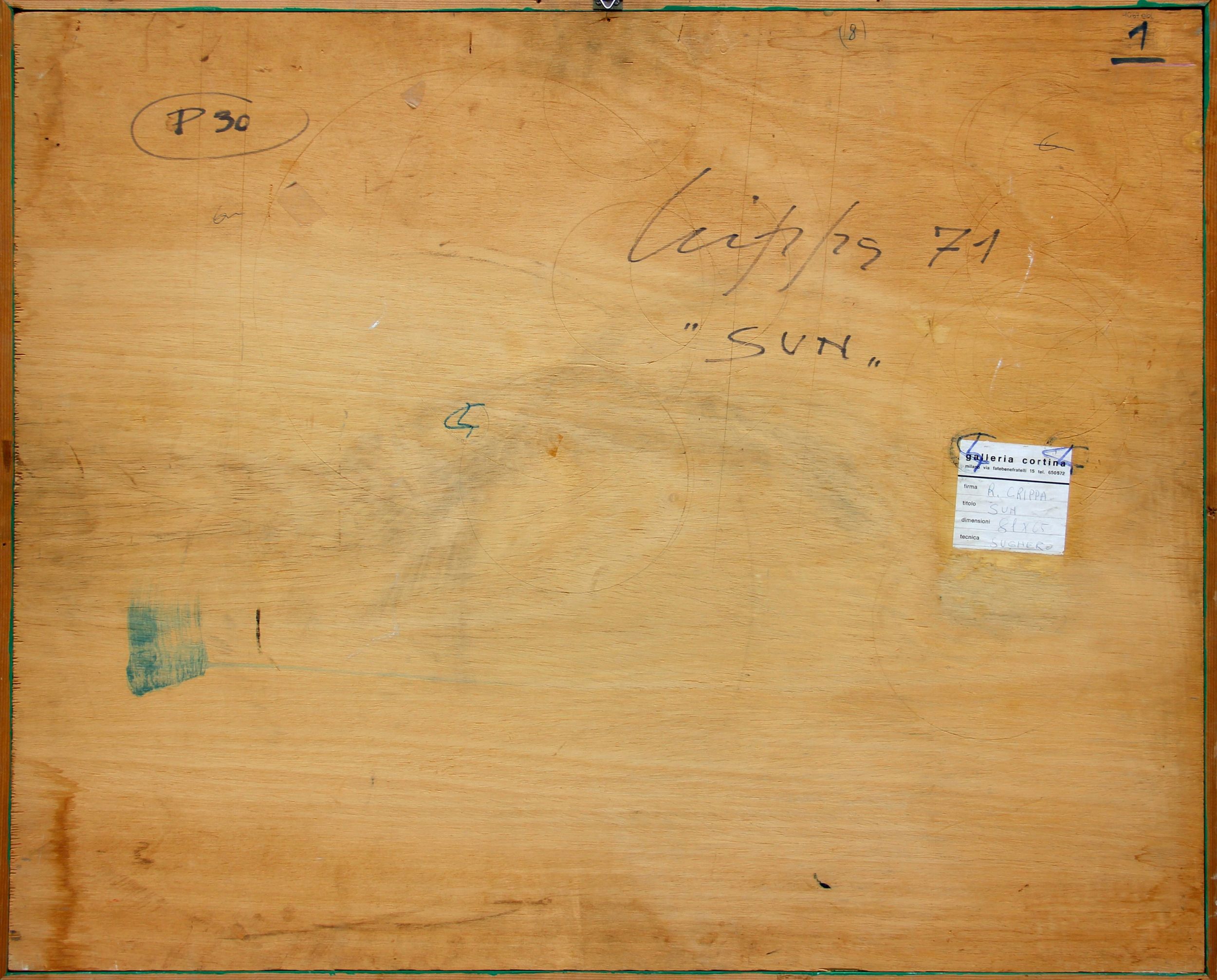 1971 Firma, data, titolo, numerazione 'Crippa, 71, Sun, ADN 0-X-10-111-01';  etichetta della Galleria Cortina, Milano (al retro)