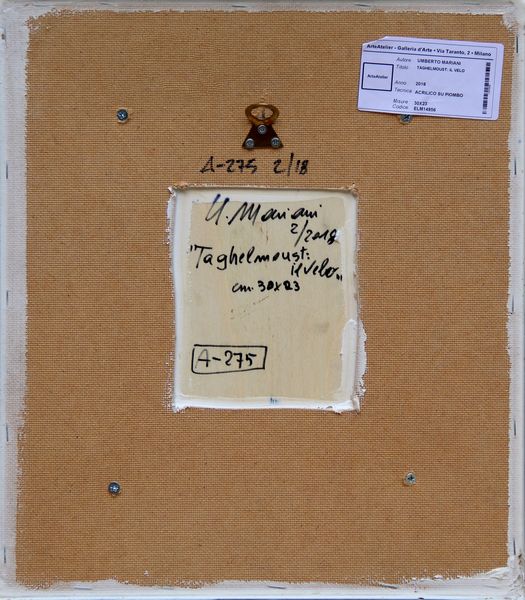 2018 Firma, data, titolo, misura, numerazione 'U. Mariani, 2/2018, Taghelmoust: il velo, cm. 30x23, A-275' (al retro)
