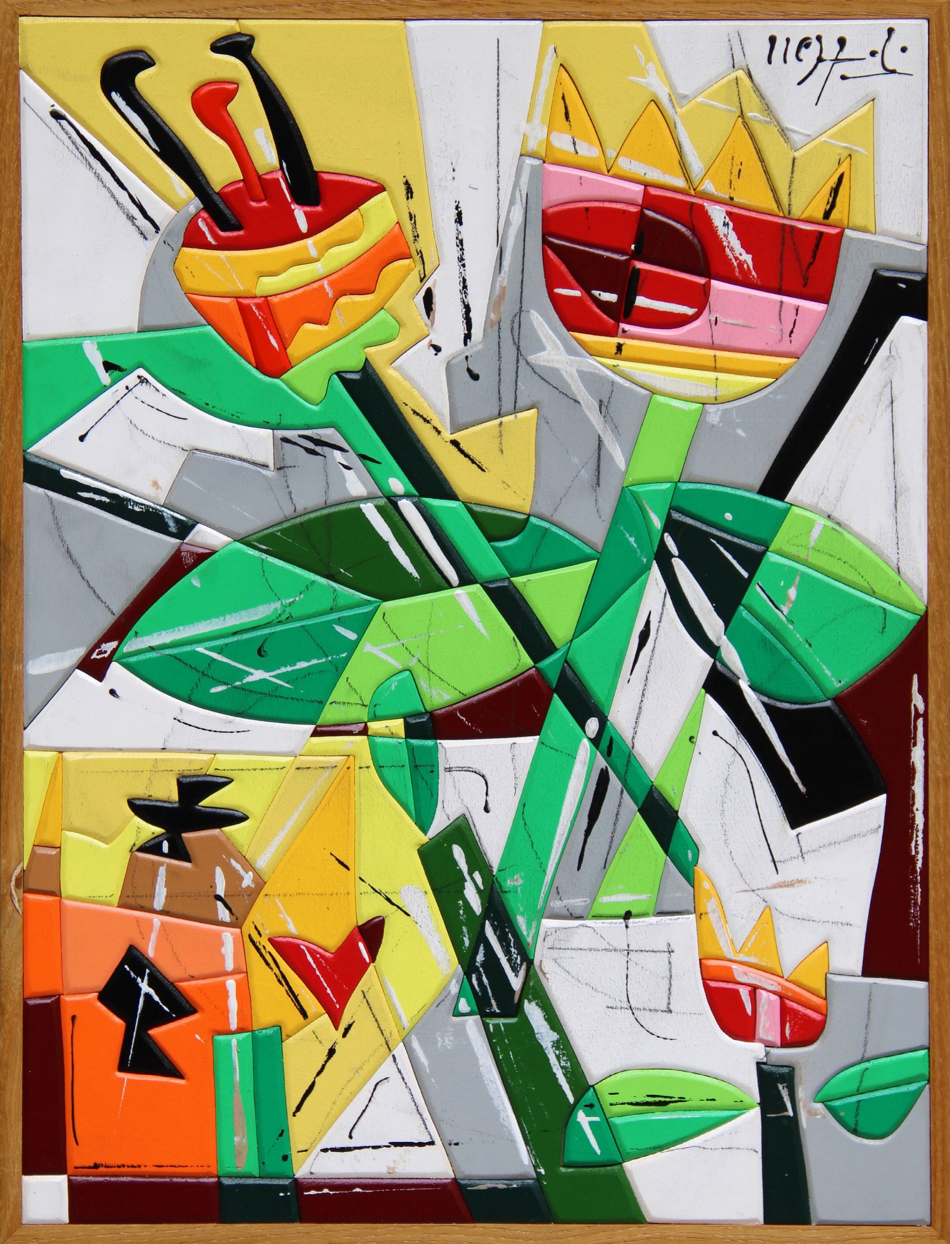 La misura è comprensiva della cornice Firma 'Nespolo' (in alto a destra) Titolo, tecnica, misura, firma 'Tutto spaventato tanto, acrilici/grafite, cm. 40x30, Nespolo' (al retro)