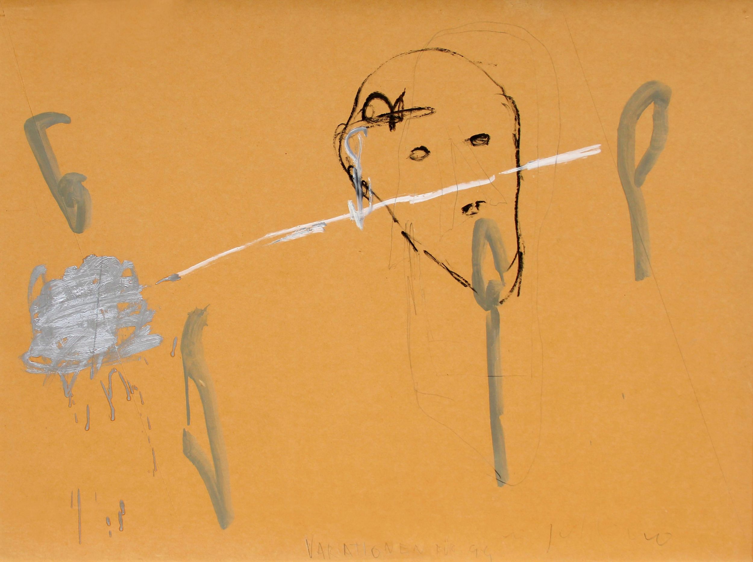 1993 Titolo, firma 'Variationen für G-G, Paladino' (in basso a destra) Timbro della Galleria Fabjbasaglia, Bologna; etichetta della Galleria ReArt, Reggio Emilia (al retro)