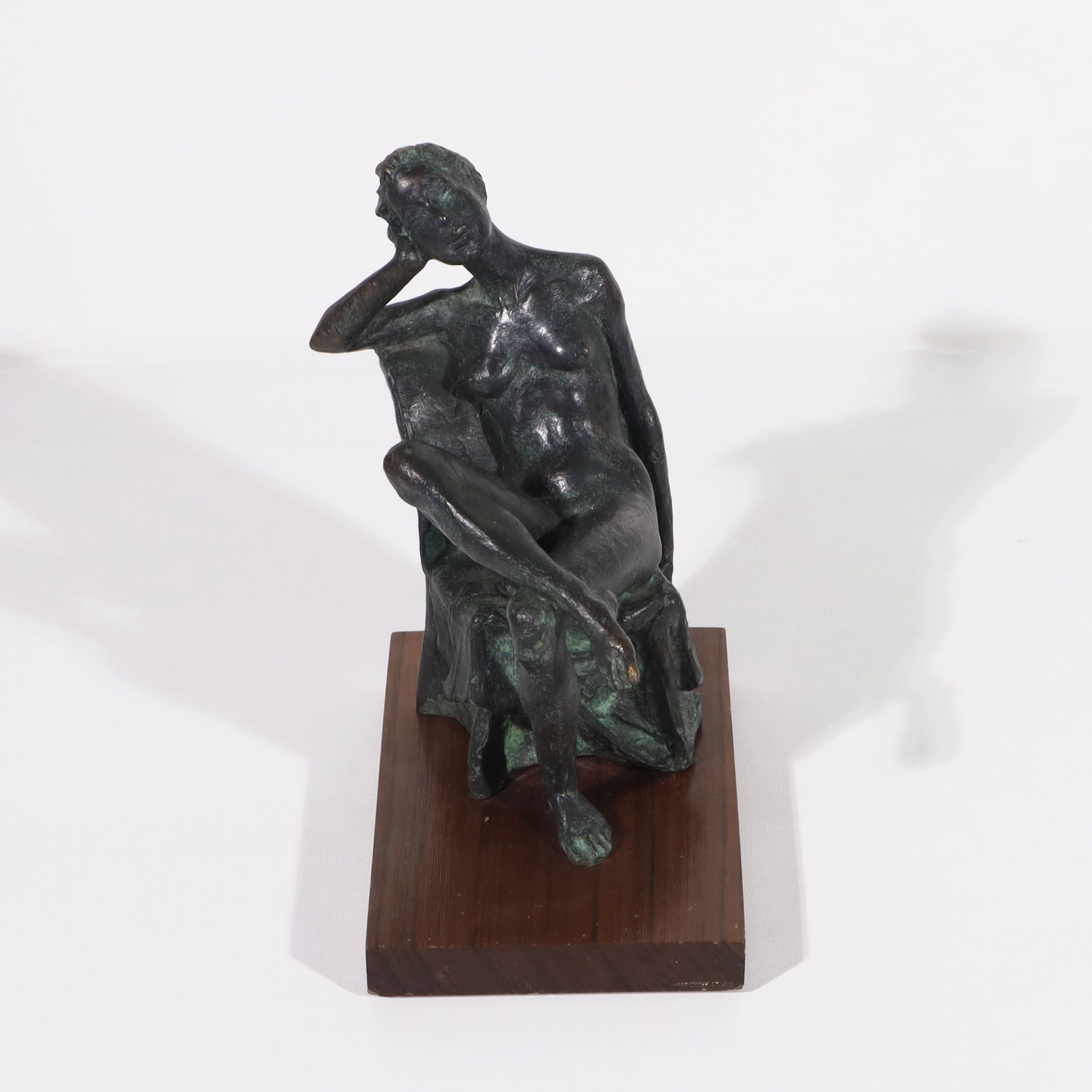 Scultura di donna seduta in bronzo (cm 17,3) con base in legno