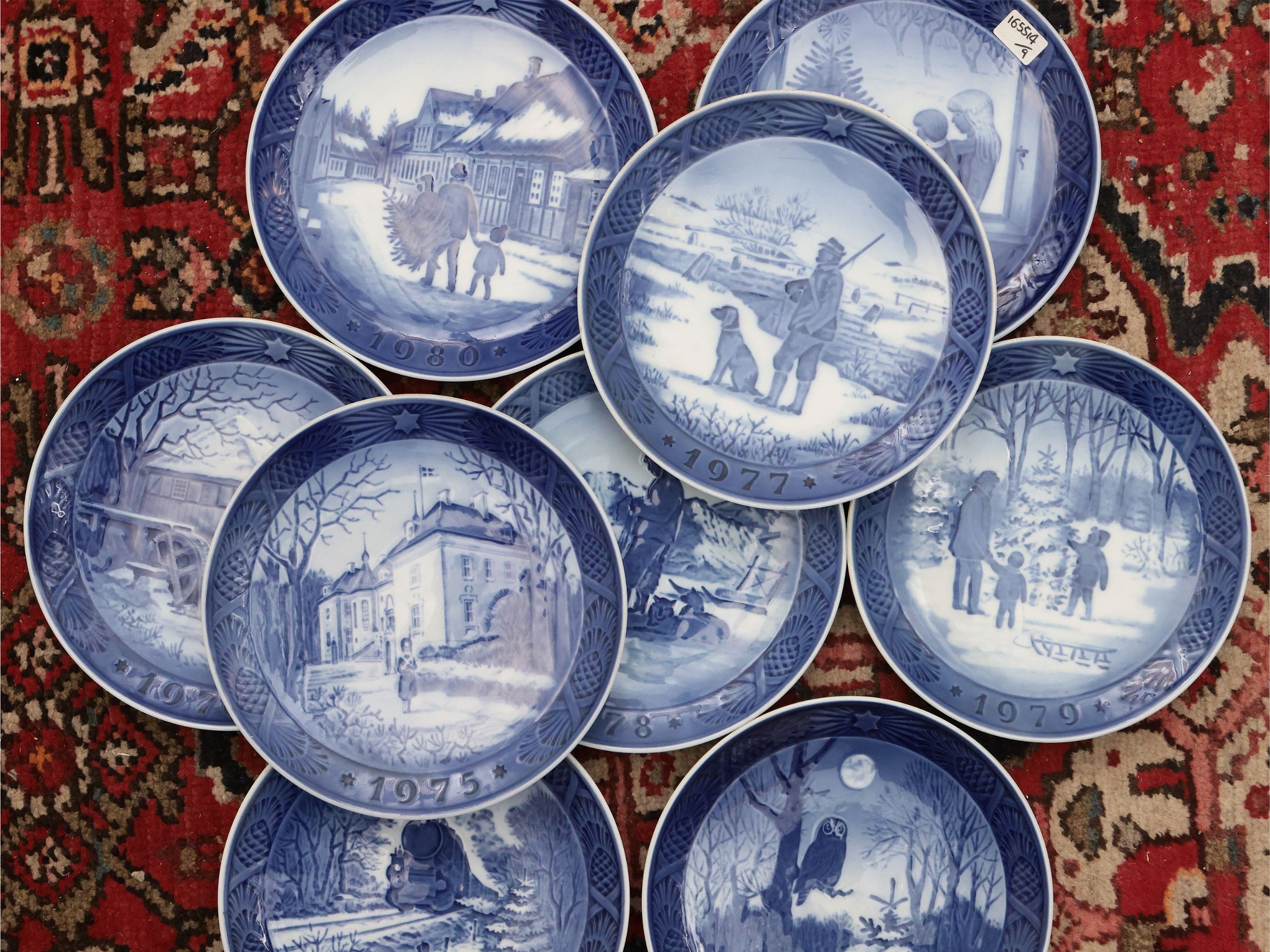 Collezione di nove piatti di Natale in porcellana, Royal Copenhagen