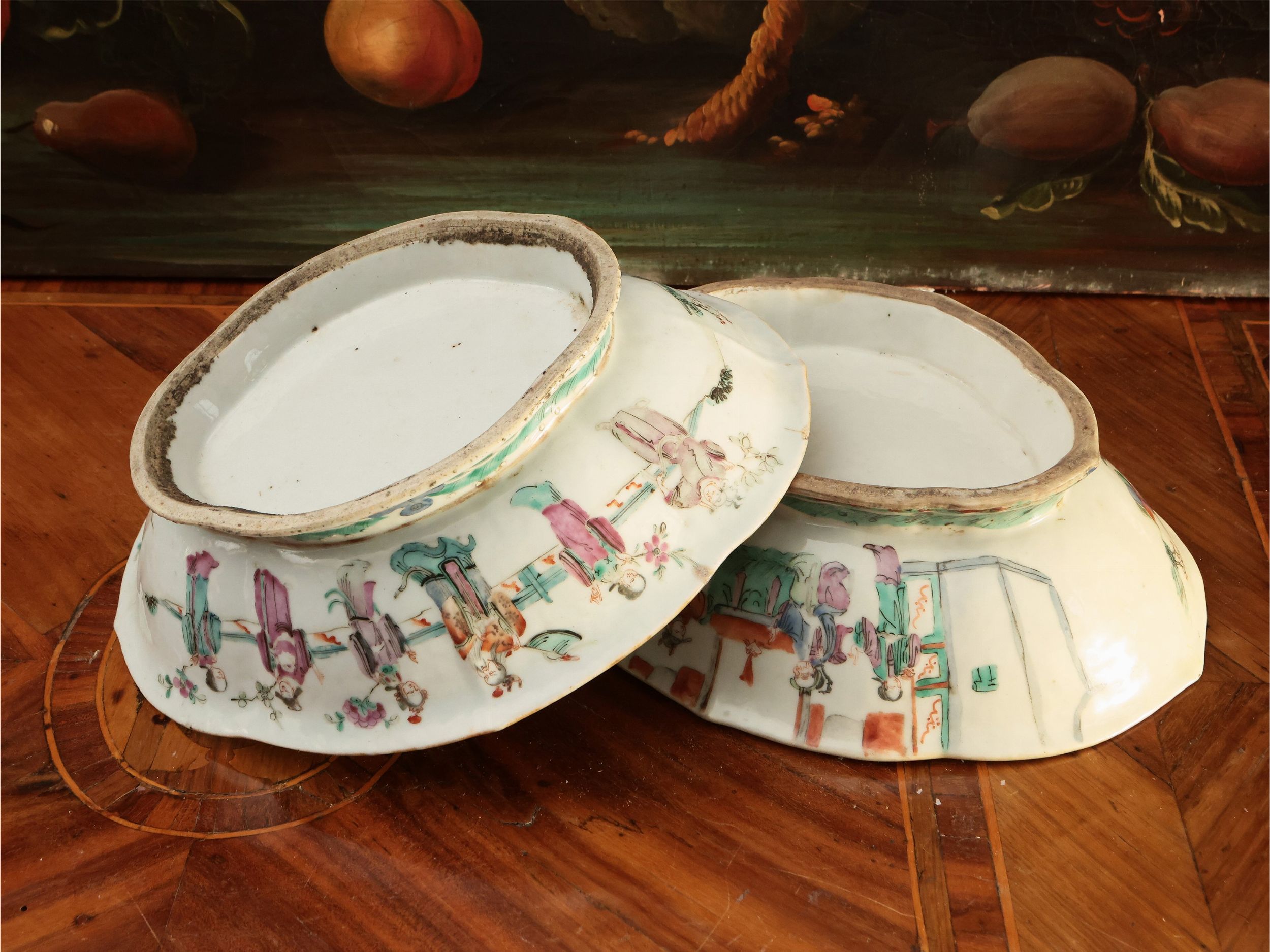 Cina, XIX secolo di forma polilobata, dipinte in policromia con scene di genere