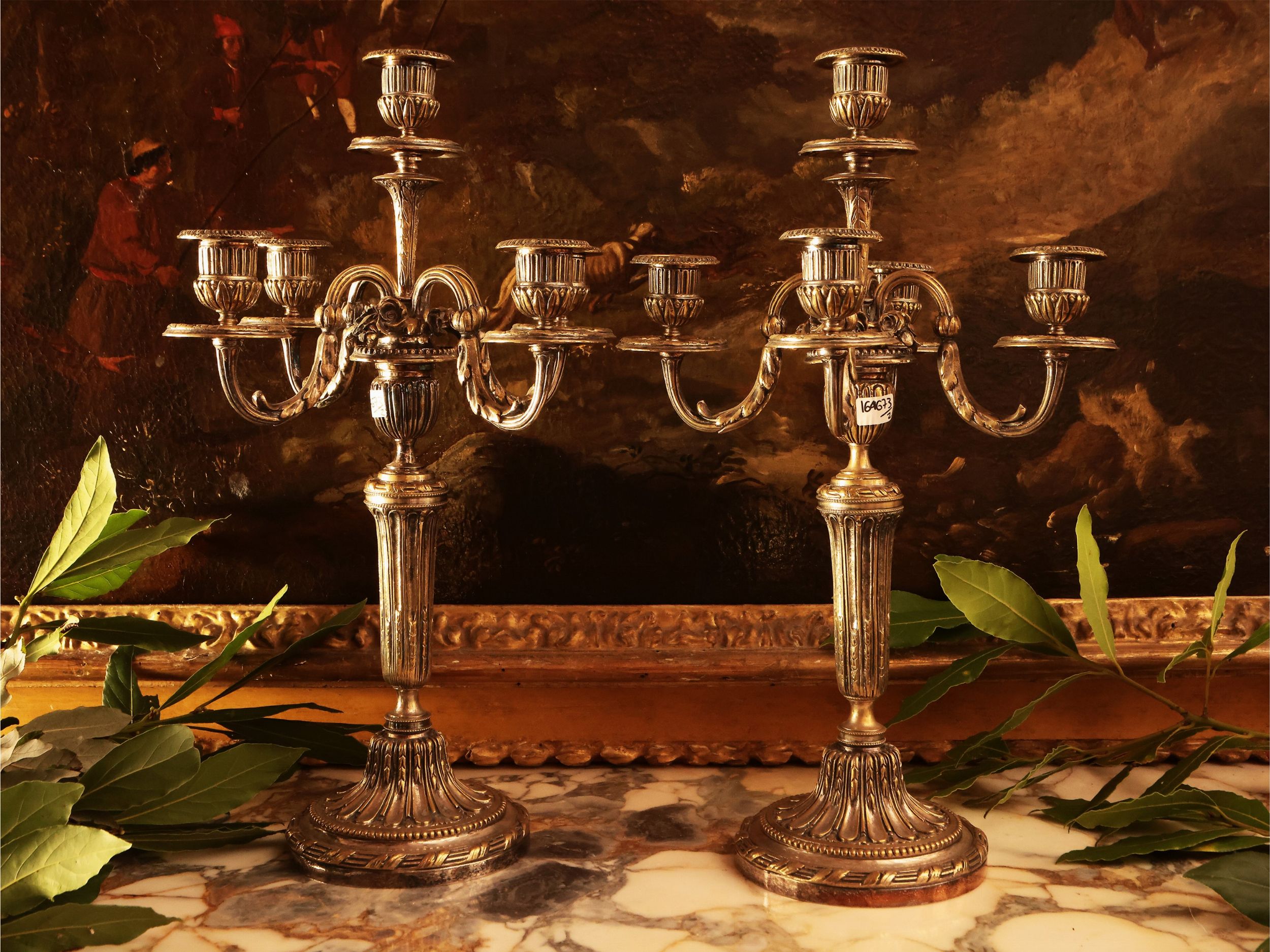 Coppia di grandi candelabri in metallo argentato