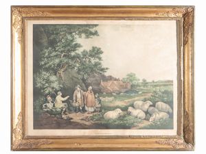 matrice cm 40,5x53,5 foglio cm 50x60 XIX secolo acquaforte, in cornice, difetti, fioriture