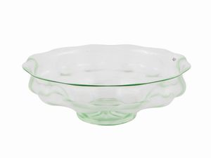 h cm 9, diam cm 26,5 Murano, Italia 1925 circa in vetro soffiato verdino a leggere costolature.