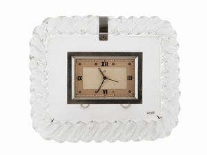 h cm 34x11x11 Murano, Italia 1990 circa in vetro soffiato trasparente e lattimo, base e portalampada in metall [..]