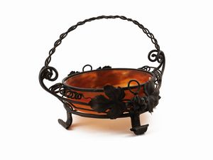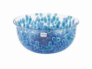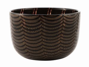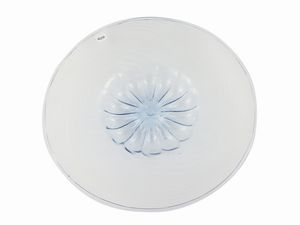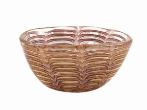h cm 12, diam cm 19 Murano, Italia 1960 circa con spirali ametista e foglia d'oro. Firma incisa sotto la base.