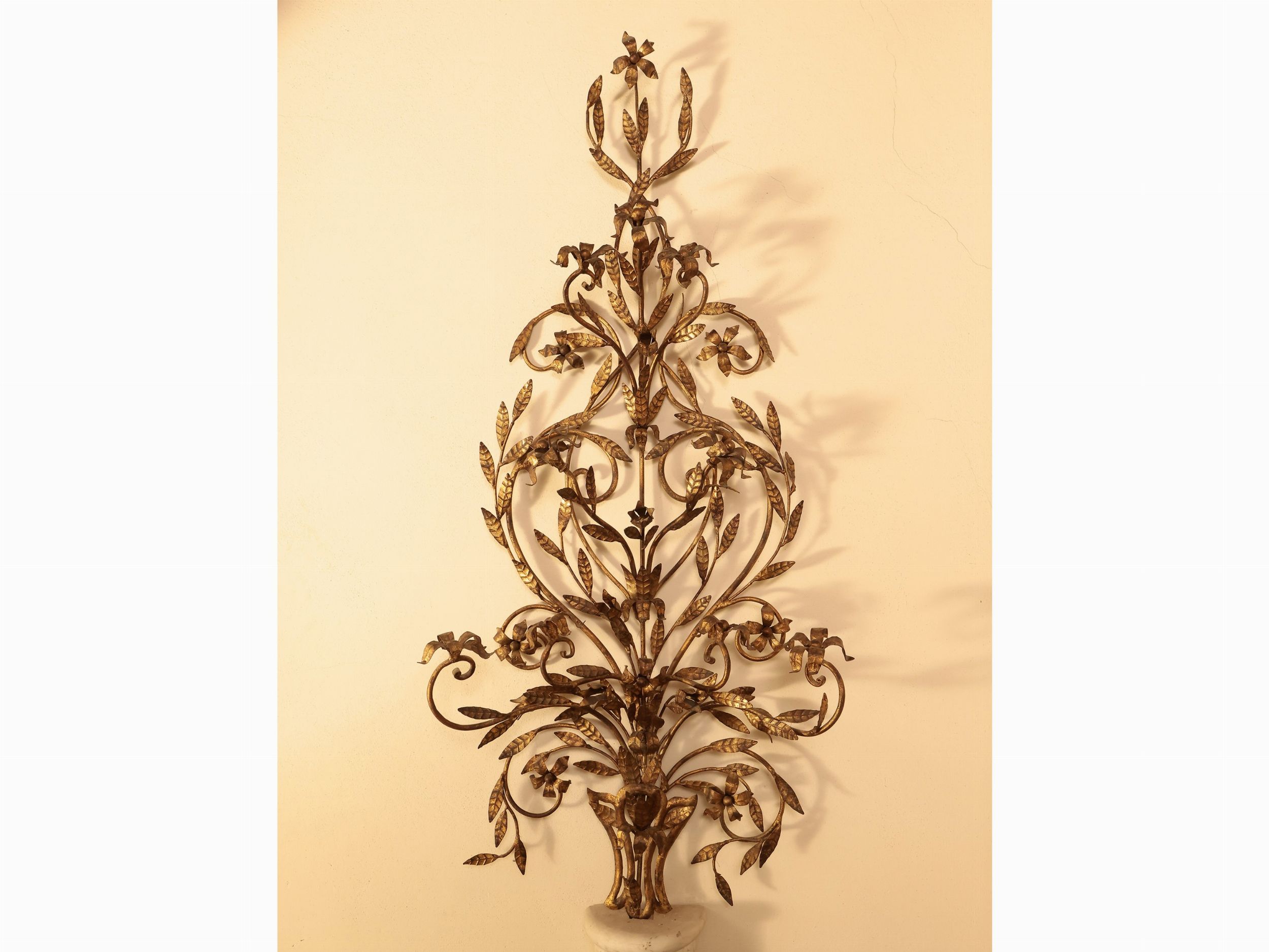 Grande fregio decorativo in ferro battuto dorato