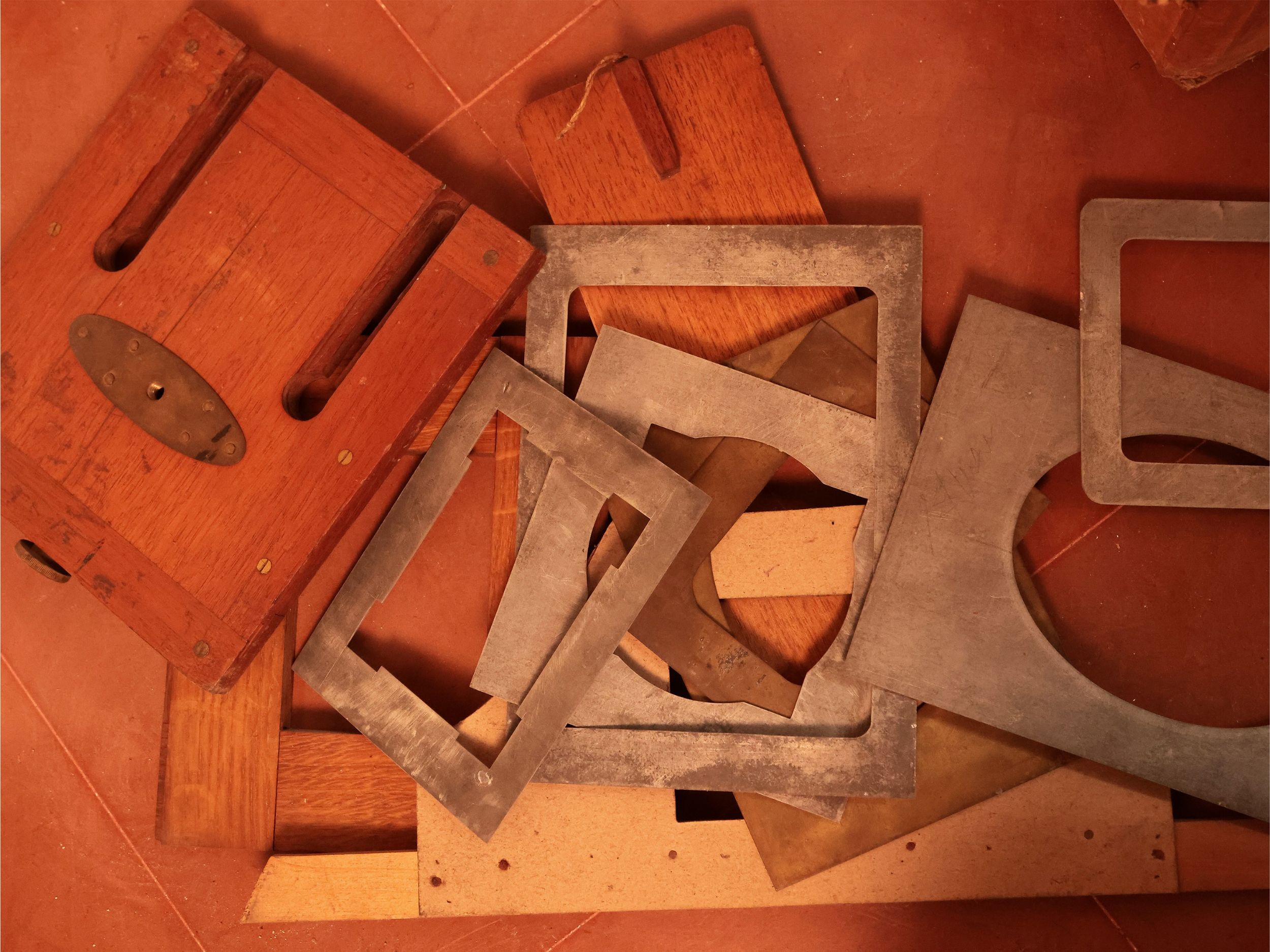 XIX/XX secolo composto da una raccolta di telai di varia foggia e dimensione, una serie di filtri ed altri accessori