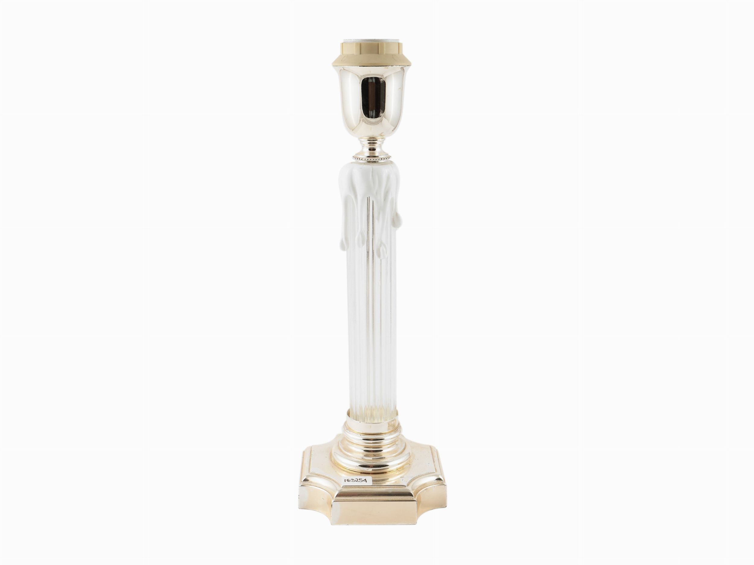 Murano, Italia 1990 circa in vetro soffiato trasparente e lattimo, base e portalampada in metallo.